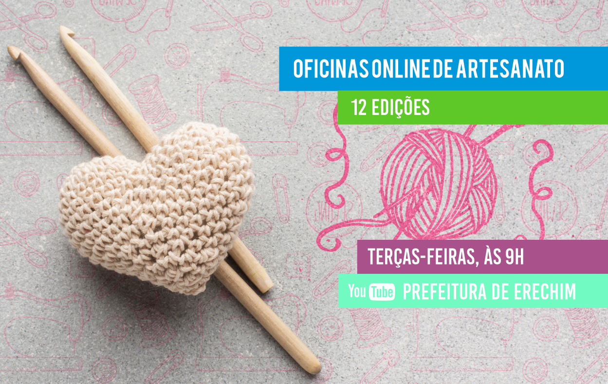 A Secretaria de Cultura, Esporte e Turismo, inicia na próxima terça-feira (4), uma série de 12 oficinas online de artesanato para toda comunidade. As atividades terão transmissão ao vivo no Canal do Youtube da Prefeitura de Erechim durante 12 semanas, sempre na terça-feira, às 9 horas. Além da transmissão ao vivo, os vídeos ficarão disponíveis para quem desejar assistir posteriormente. Será possível solicitar certificação pelo e-mail smcet-cultura@erechim.rs.gov.br.