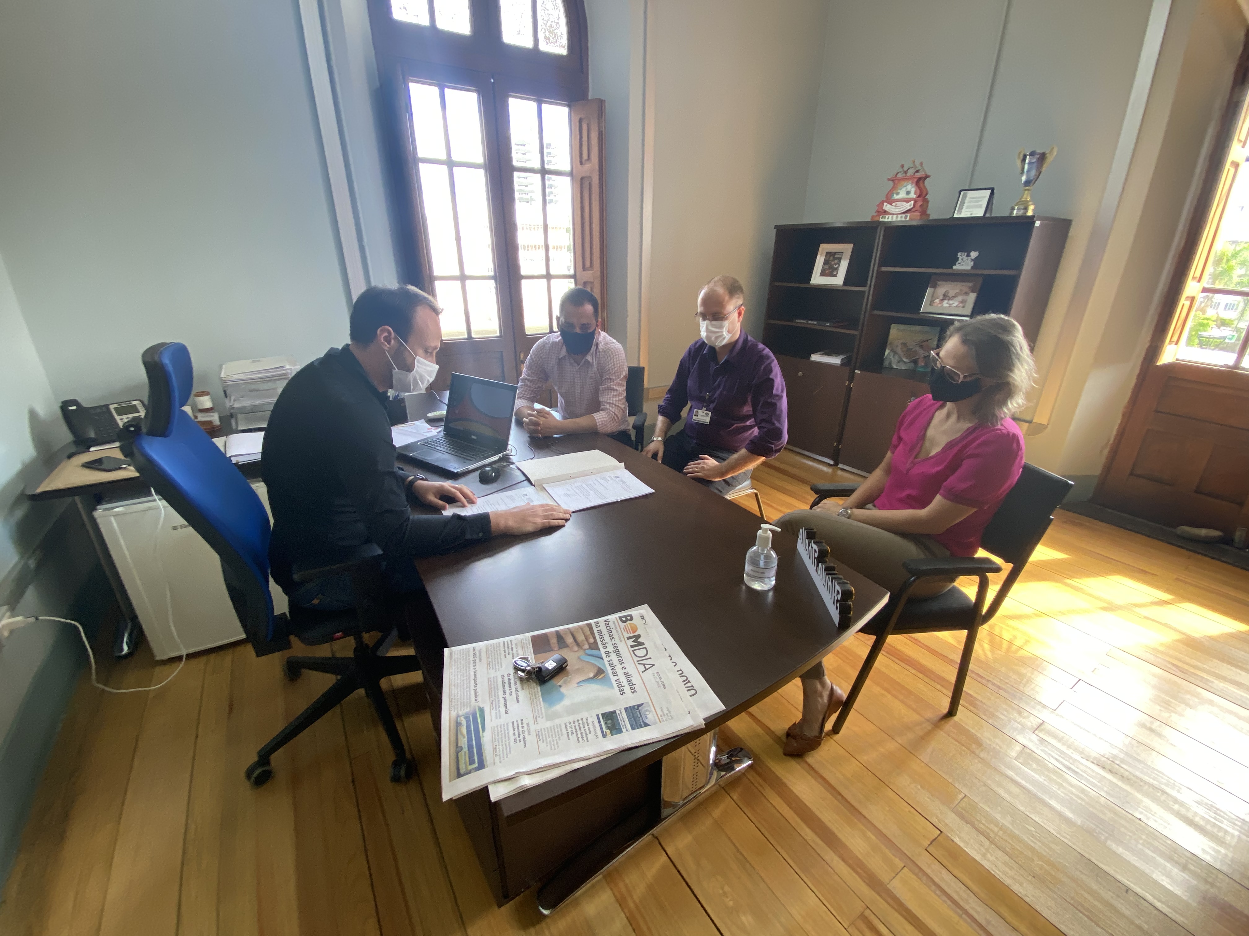 Na manhã desta sexta-feira (14), o prefeito em exercício, Flávio Tirello recebeu os representantes do Instituto Erechinense de Previdência (IEP), sendo, o diretor-presidente Renato Toso, o diretor financeiro, Diones Weber e a diretora previdenciária, Rosa de Oliveira.