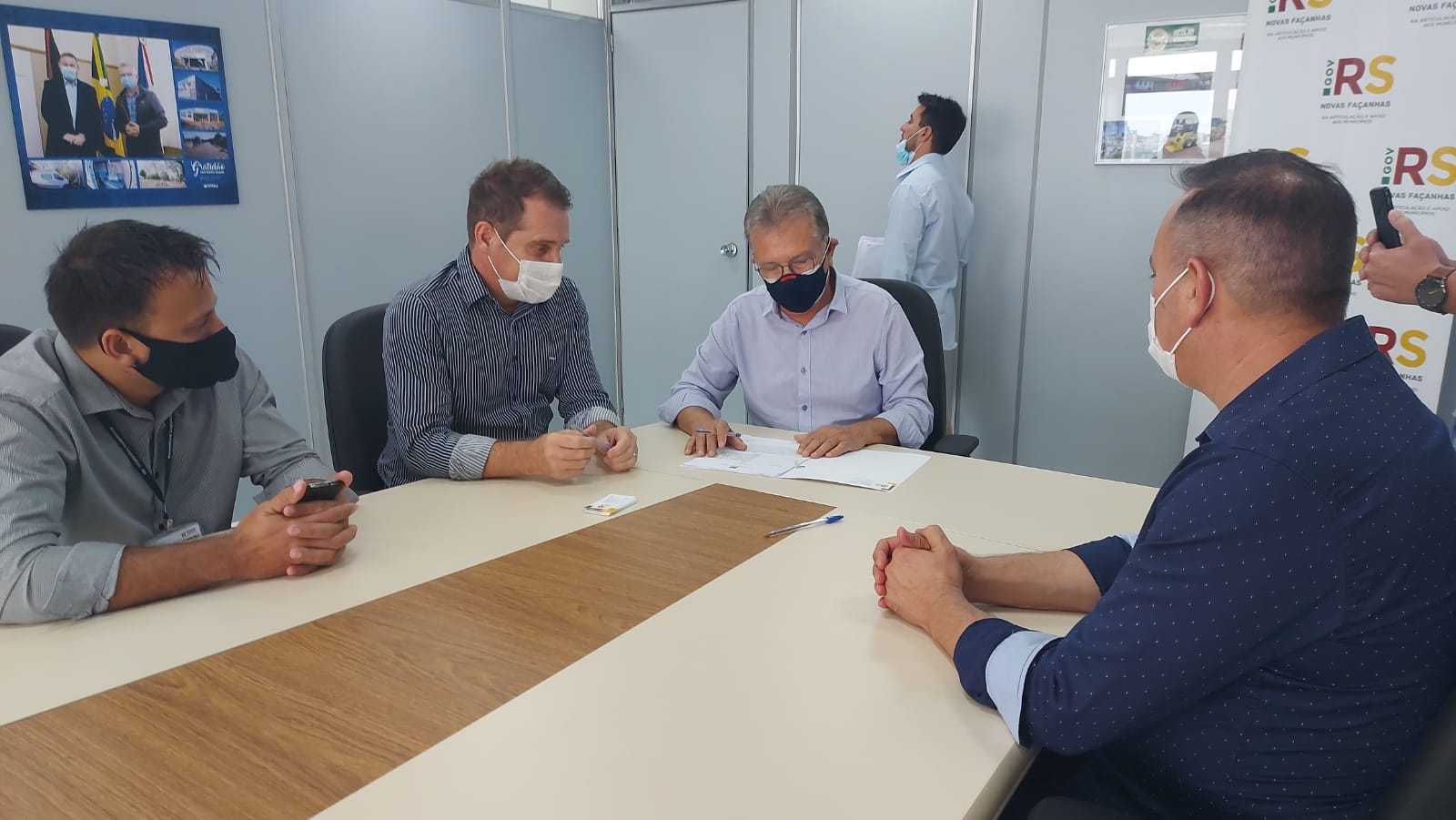 A assinatura aconteceu com o secretário de Articulação e Apoio aos Municípios do RS, Luiz Carlos Busato e de um assessor do Deputado Estadual Dirceu Franciscon (PTB).