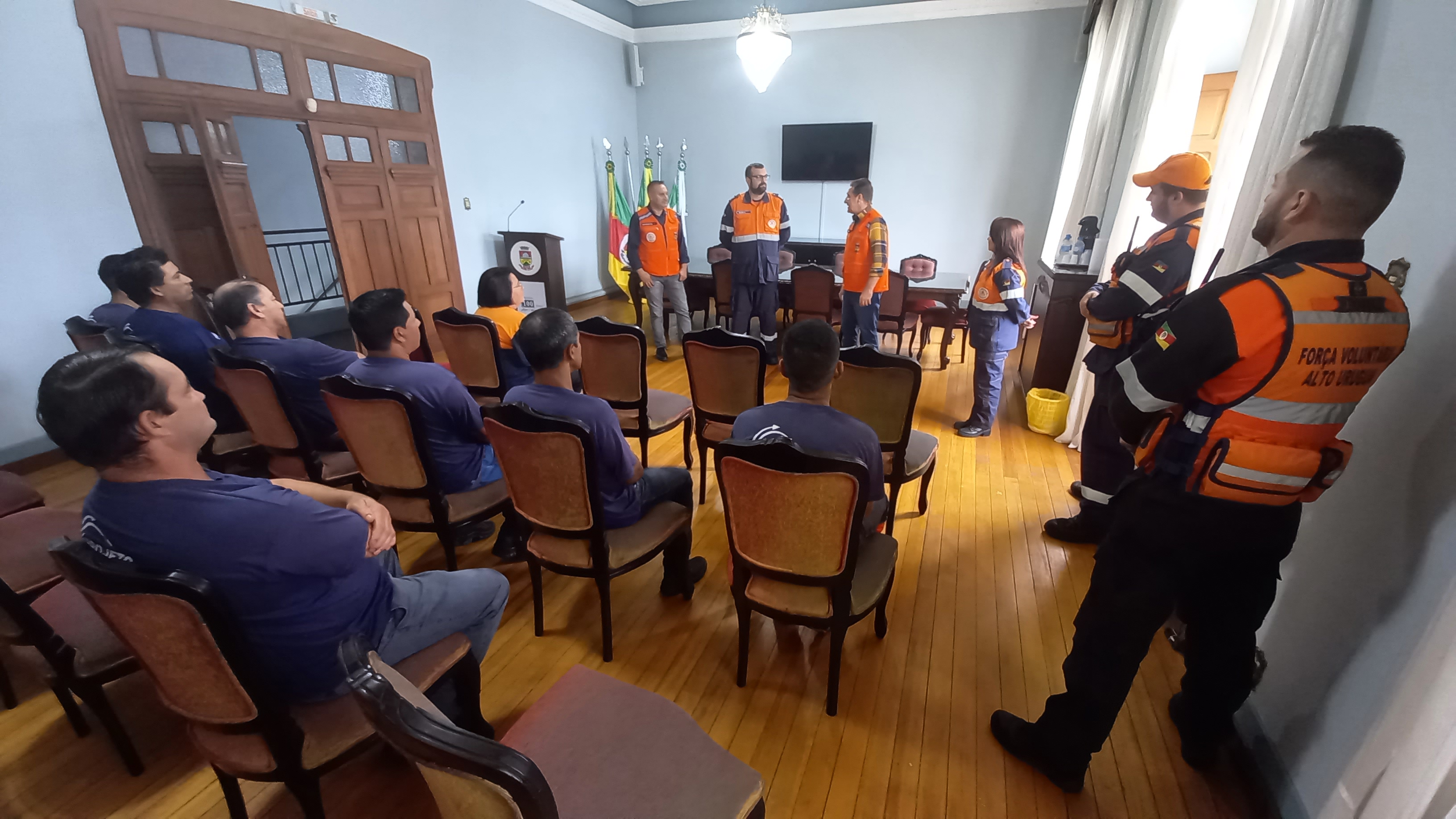 A Defesa Civil de Erechim, com a presença de toda a equipe, realizou a entrega simbólica de coletes, no Salão Nobre, na sede da Prefeitura de Erechim, para o prefeito, Paulo Polis, e o secretário de Gestão e Governança, Edgar Marmentini, responsável pelo órgão de segurança.
