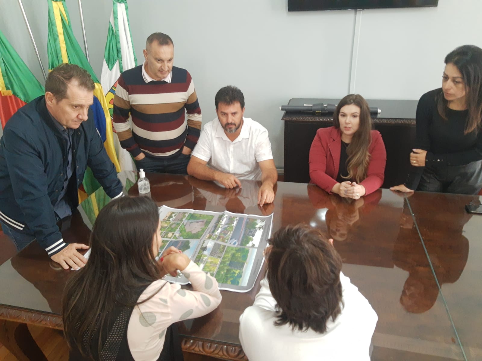 O prefeito de Erechim, Paulo Polis, acompanhado do secretário de Meio Ambiente, Cristiano Moreira e da adjunta da pasta, Carla Orso, além do secretário de Gestão e Governança, Edgar Marmentini, receberam o estudo de requalificação da área de lazer do Parque Municipal Longines Malinowski.