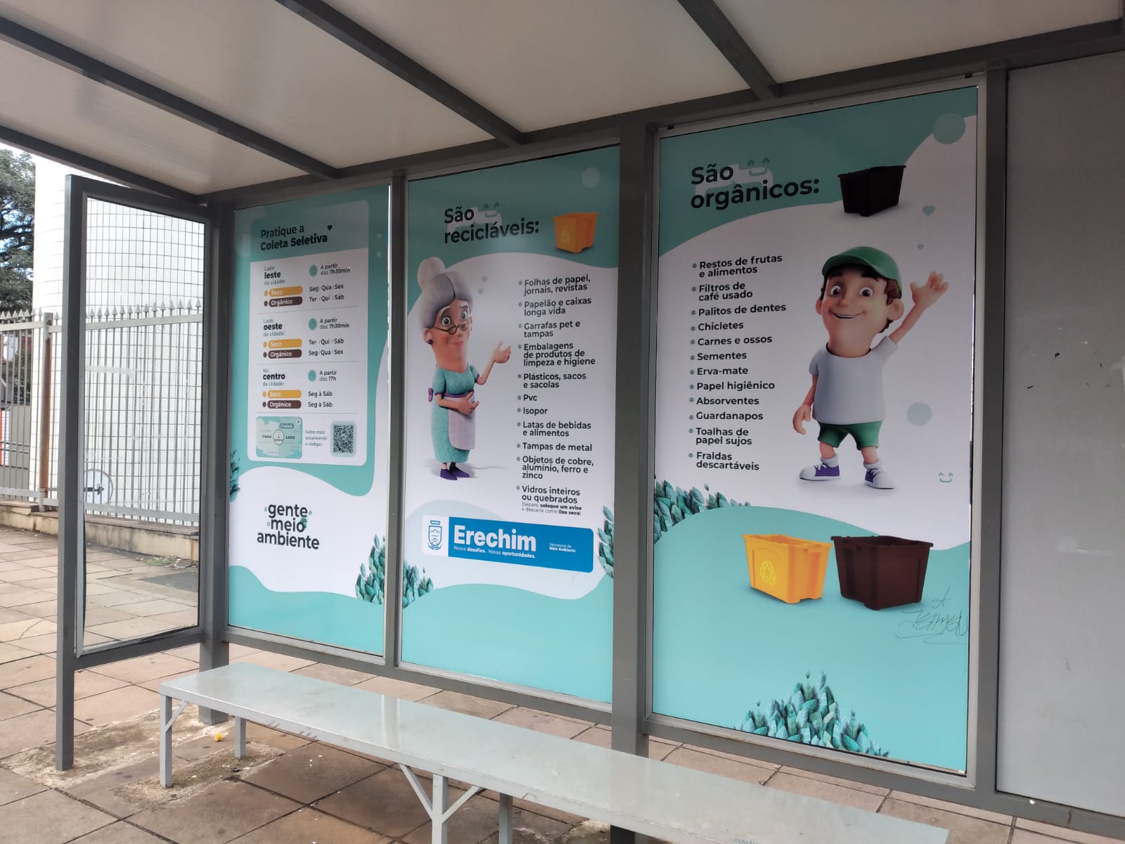 Para intensificar a campanha, nesta semana 12 paradas de ônibus estão recebendo adesivos informativos sobre como praticar a coleta seletiva.