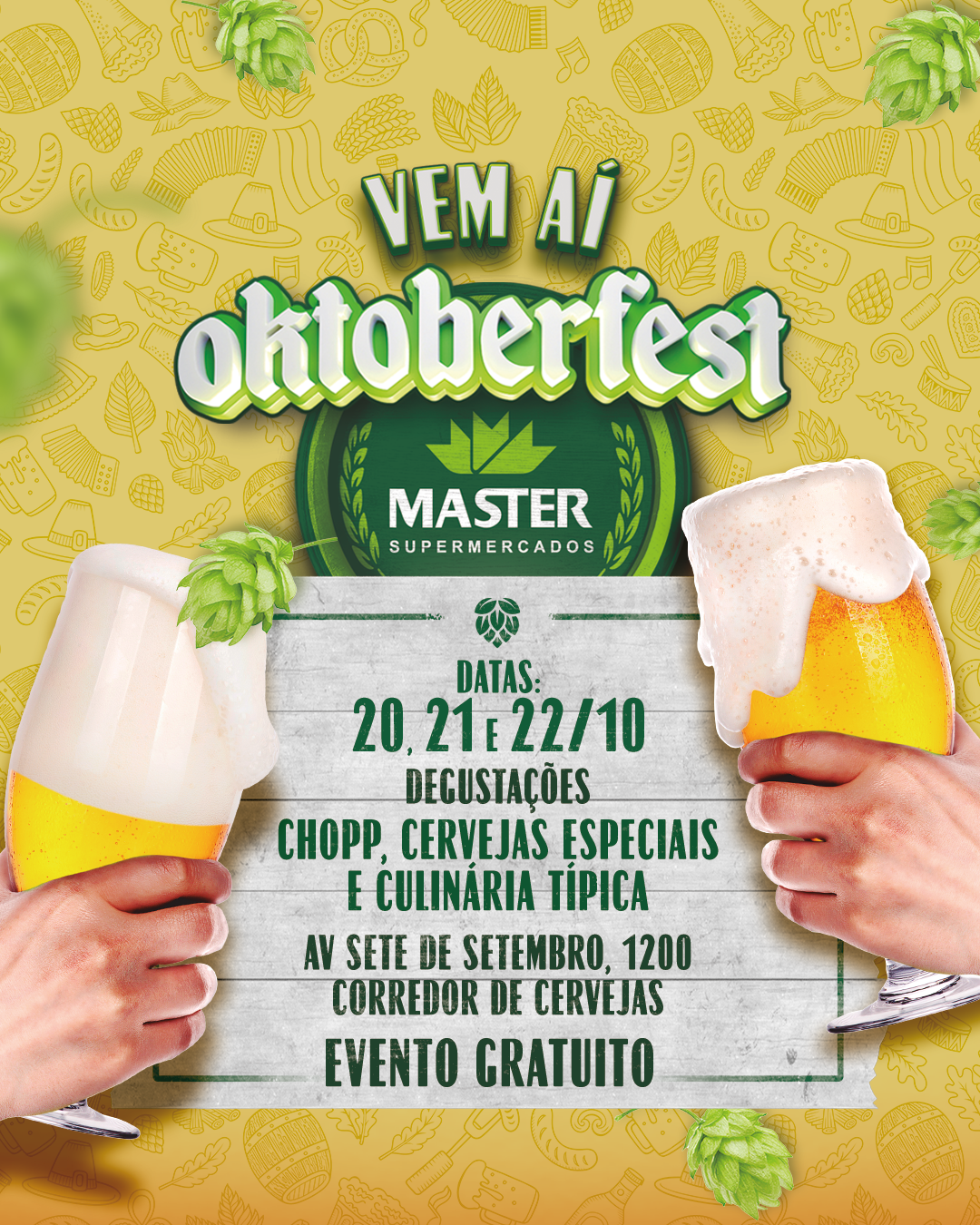 O Master Supermercados te convida a viver a magia da Oktoberfest, venha se divertir com a gente, Tá no Master, tá em casa. Prost!!.