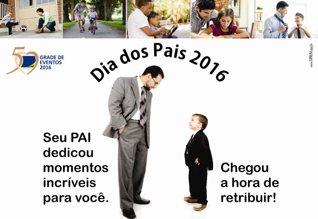 A CDL Erechim realiza a Campanha Dia dos Pais 2016 – Um jantar para seu pai tendo você como acompanhante! A campanha acontece nas lojas do dia 01 de agosto, segunda-feira, até 13 de agosto, sábado. Estão envolvidas nesta promoção todas as lojas associadas da CDL Erechim desde que participantes da Grade de Eventos 2016.