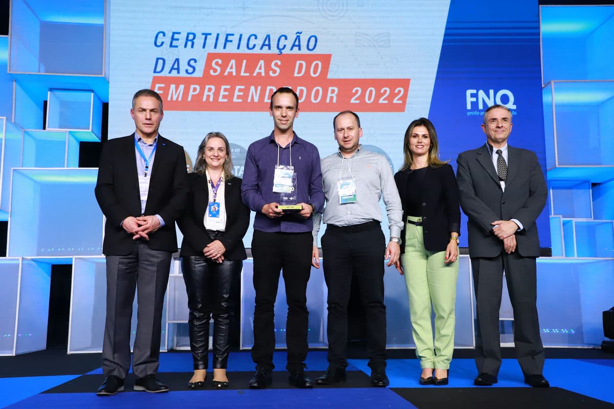 A Prefeitura de Erechim recebeu, na última quarta-feira (19), por meio da Secretaria Municipal de Desenvolvimento Econômico, Inovação e Turismo e o projeto Sala do Empreendedor, o Selo Ouro 2022. A premiação foi entregue pelo Sebrae/RS na Mercopar 2022, que está ocorrendo no município de Caxias do Sul (RS). A avaliação é realizada pela Fundação Nacional de Qualidade (FNQ), em conjunto com o Sebrae.