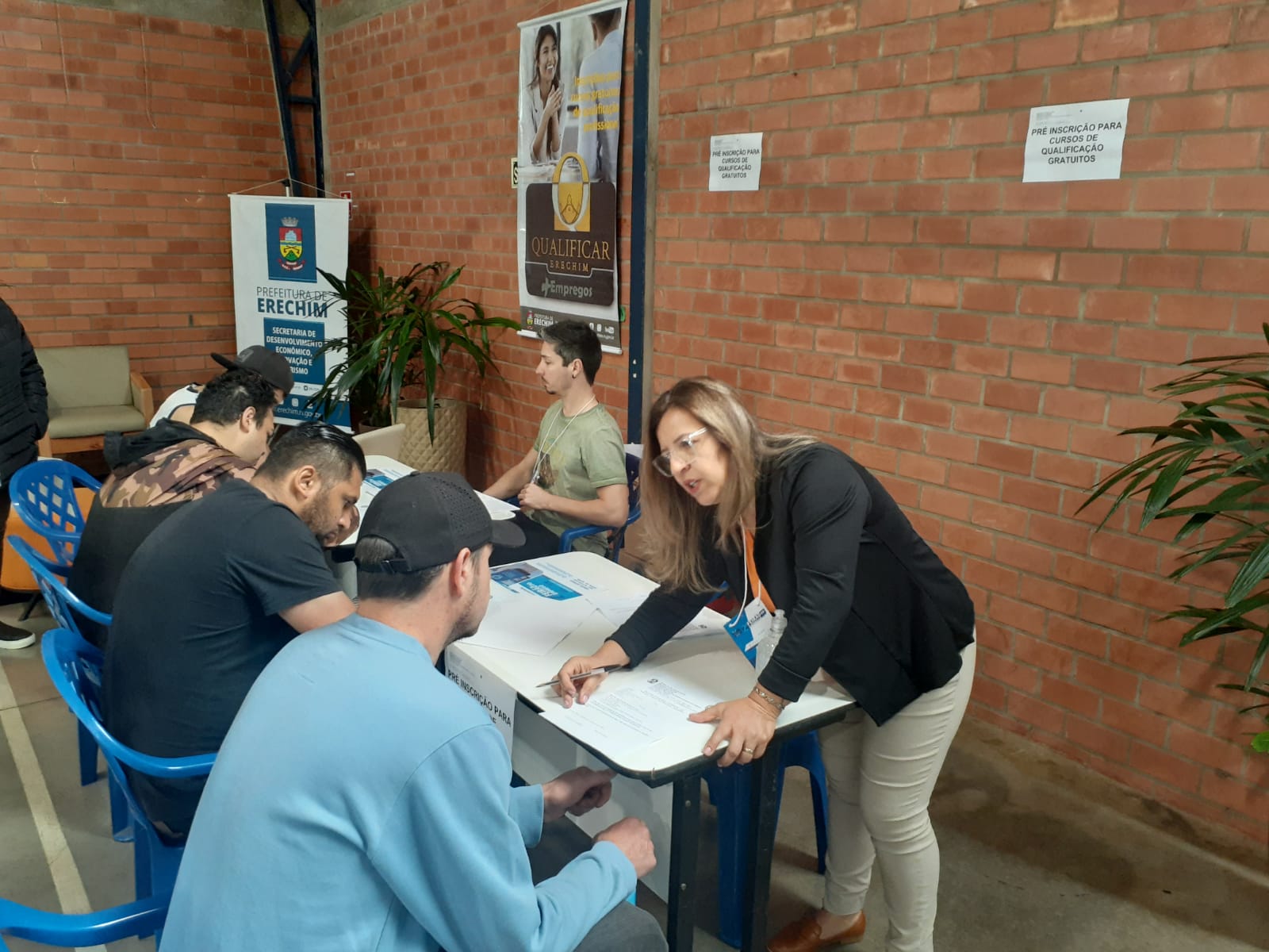 Mais de 800 pessoas foram conferir as 1060 vagas de trabalho oferecidas pelas 25 empresas presentes no 2º Feirão do Emprego 2022. A programação foi realizada, sábado (22), pela Prefeitura de Erechim, por meio da Secretaria de Desenvolvimento Econômico, Inovação e Turismo e o projeto Qualificar Erechim + Empregos, no Ginásio de Esportes do Colégio Estadual Haidée Tedesco Reali, em Erechim. No dia, os interessados também puderam fazer a pré-inscrição dos cursos de qualificação gratuitos oferecidos pela prefeitura.