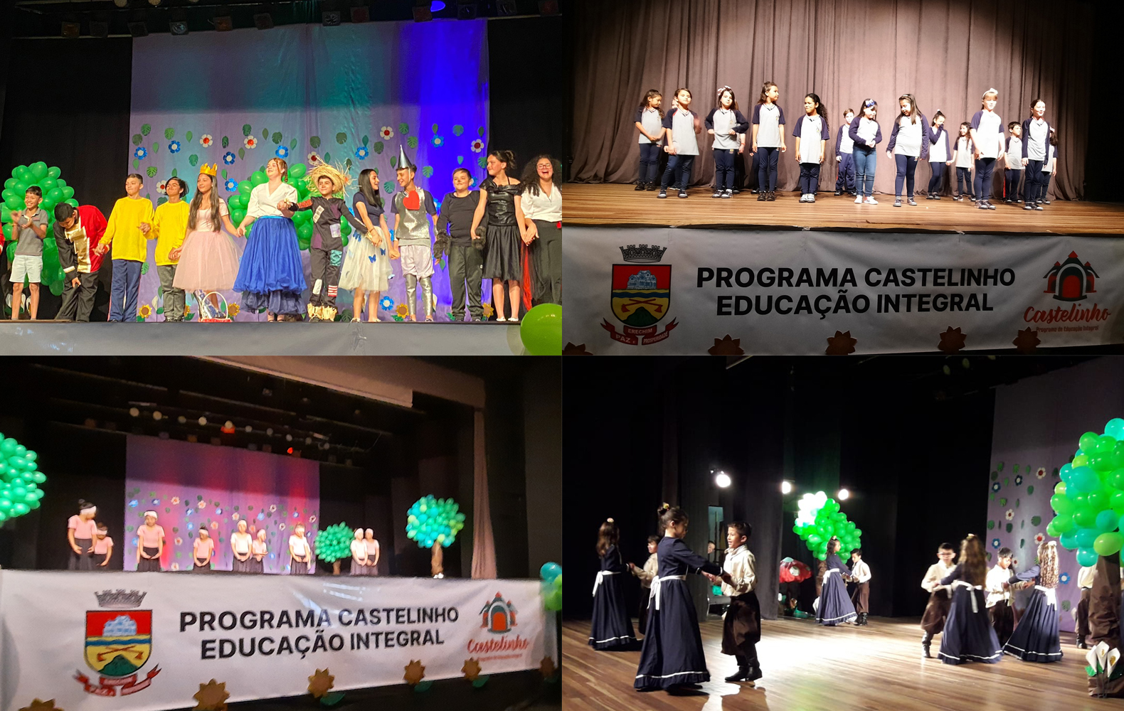 Na última sexta-feira (21), 700 estudantes envolvidos no Programa de Educação Integral Castelinho, que desenvolve atividades no contra turno aos estudantes do Ensino Fundamental e no turno escolar para Educação Infantil, com projetos de banda escolar, basquete, dança gaúcha, dança livre, futsal, handebol, inglês, karatê, robótica teatro, voleibol, musicalização, vivências e práticas corporais.