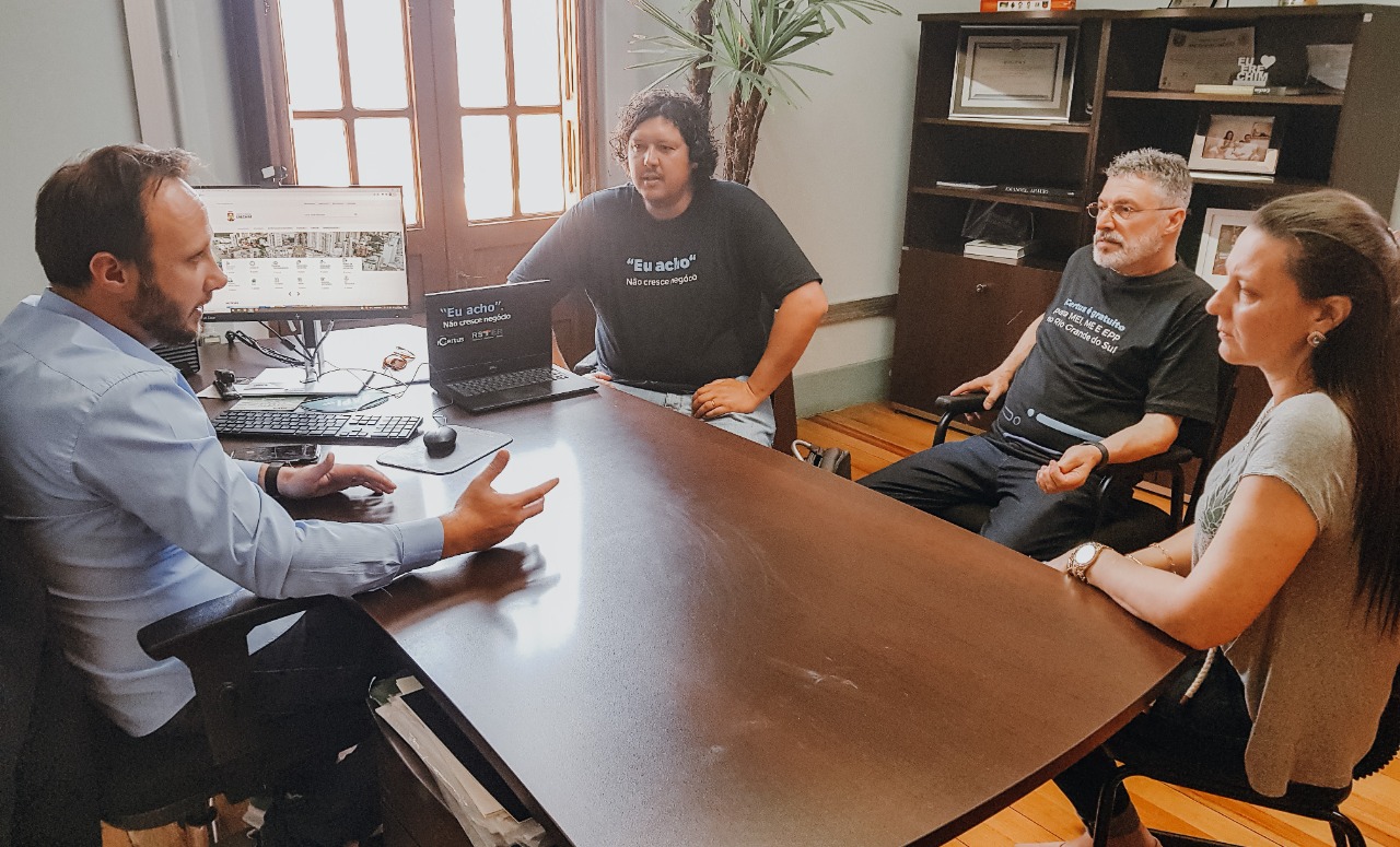 No fim da manhã desta quarta-feira (26), o vice-prefeito de Erechim, Flávio Tirello e a secretária adjunta de Desenvolvimento Econômico, Inovação e Turismo, Berenice Didone, receberam o diretor de Inovação e Projetos Estratégicos da Secretaria Estadual de Desenvolvimento Econômico, Jorge Imperatore e o responsável da Statup iCertus, Fábio Leger, para tratativas do convenio com o município de Erechim, para disponibilizar aos empresários um Sistema de Gestão Empresarial totalmente gratuito.