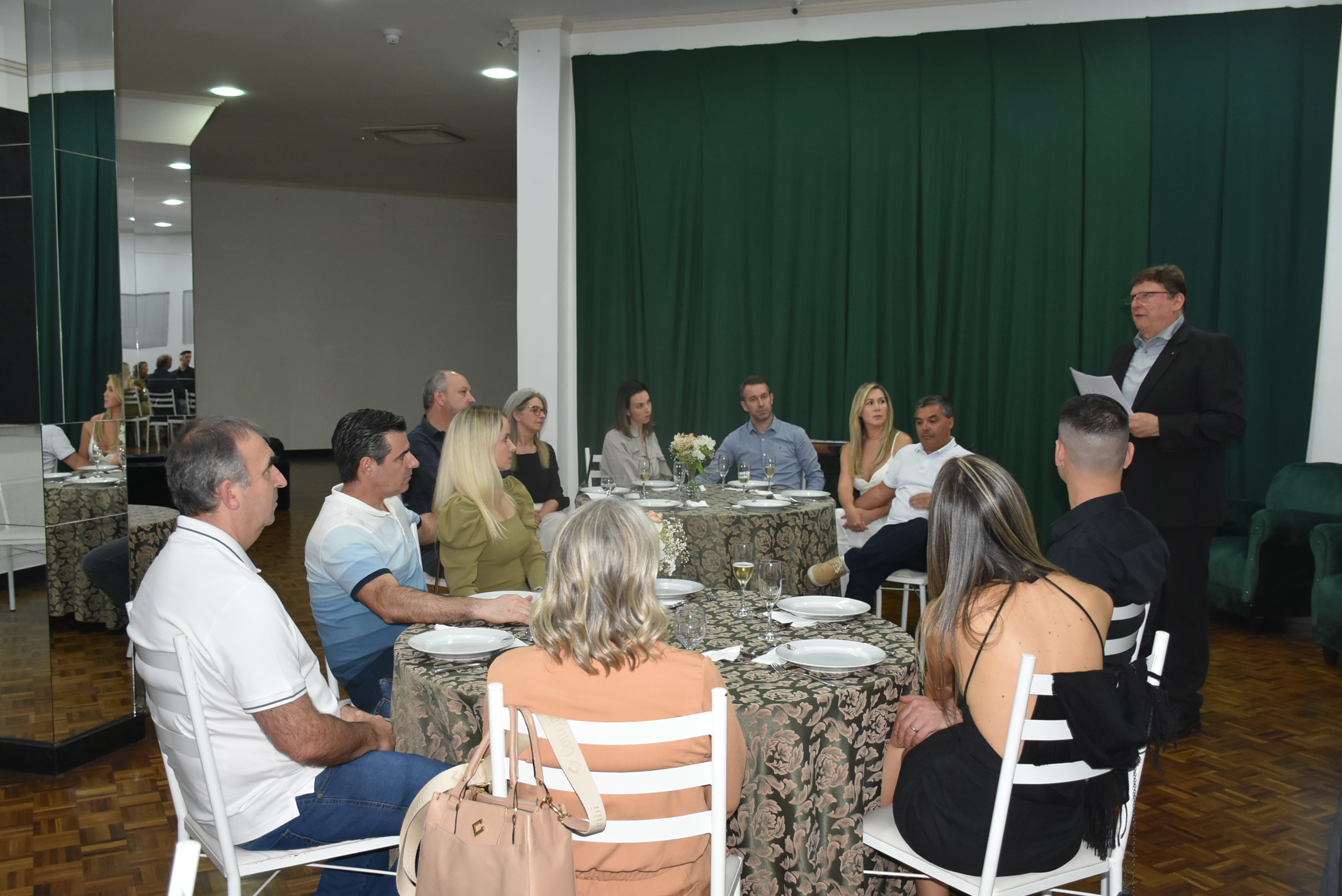 O casal presidente do CER Atlântico, Reny e Julio Brondani, e o casal vice-presidente social, Lu e Lauri Pavan, recepcionaram, na noite de quinta-feira, 27, os casais comendadores 2023 da Comenda do Galo: Luciane Maciel Pitt e Flávio Pitt, Sabrina Giacomazzi Fiebig e Gilmar Fiebig Filho e Vanessa Sandini e Rodrigo Dalla Rosa e Rejane Lis Menegaz e Ângelo Luis Stroher (este casal estava ausente em razão de uma comemoração na escola do filho). Também participaram da recepção os casais comendadores que realizaram a festa neste ano: Caroline Lavratti Skzypek e Jeferson Polachini Skzypek, Zuleica Busatta e João Busatta, Franciele Dalla Rosa e Marciano Dalla Rosa, Elaine Giollo e Paulo Roberto Giollo. O objetivo do encontro foi promover uma integração e falar da alegria e do encanto deste evento, que é um dos mais marcantes do Atlântico. A Comenda do Galo 2023 vai ser realizada no dia 27 de maio de 2023.