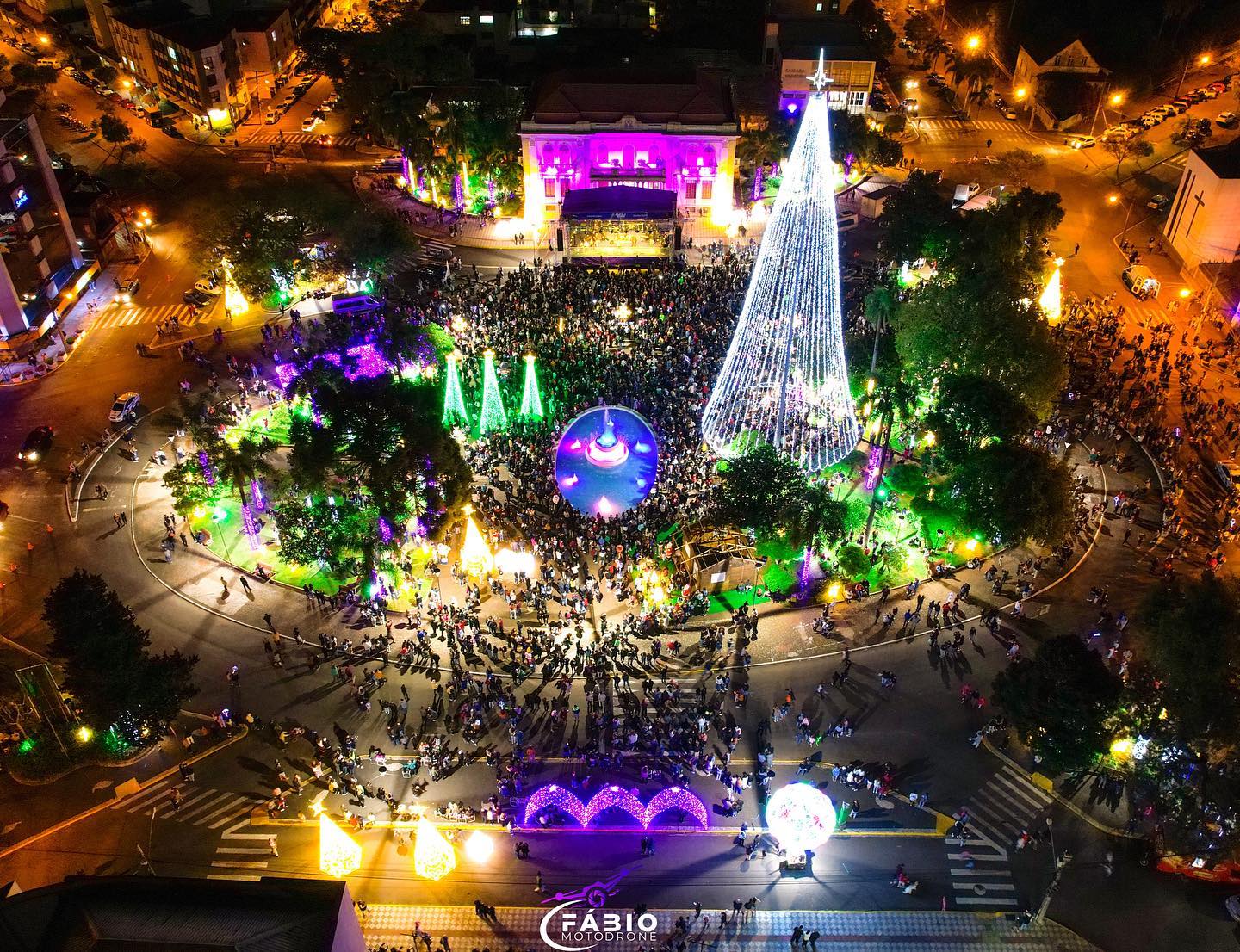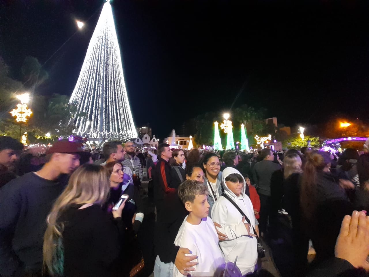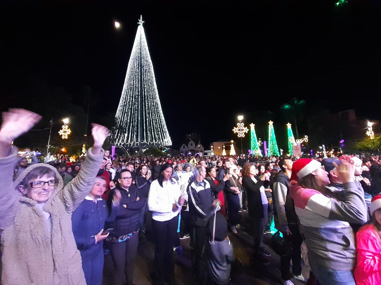 Uma multidão com mais de 10 mil pessoas lotou a Praça da Bandeira para viver a magia do Natal, confraternizar, renovar a fé, buscar alegria, paz e amor, na noite de domingo (6), com a inauguração das luzes do “Natal Erechim 2022 – Renovando Sonhos”. Neste ano, as celebrações natalinas iniciaram um pouco mais cedo para oportunizar mais atrações às famílias e movimentar o comércio local.