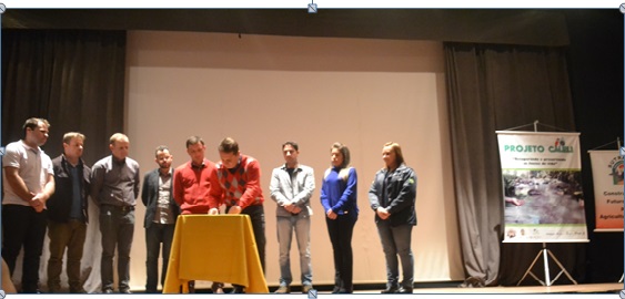 Para continuar com as atividades de recuperação e preservação ambiental nas áreas degradadas pertencentes à Bacia de captação de água, neste evento foi oficializada a assinatura do contrato que prevê a continuidade do projeto Caleli, a fim de envolver as famílias que não participaram na primeira etapa e avançar na conscientização da população da região do Alto Uruguai.