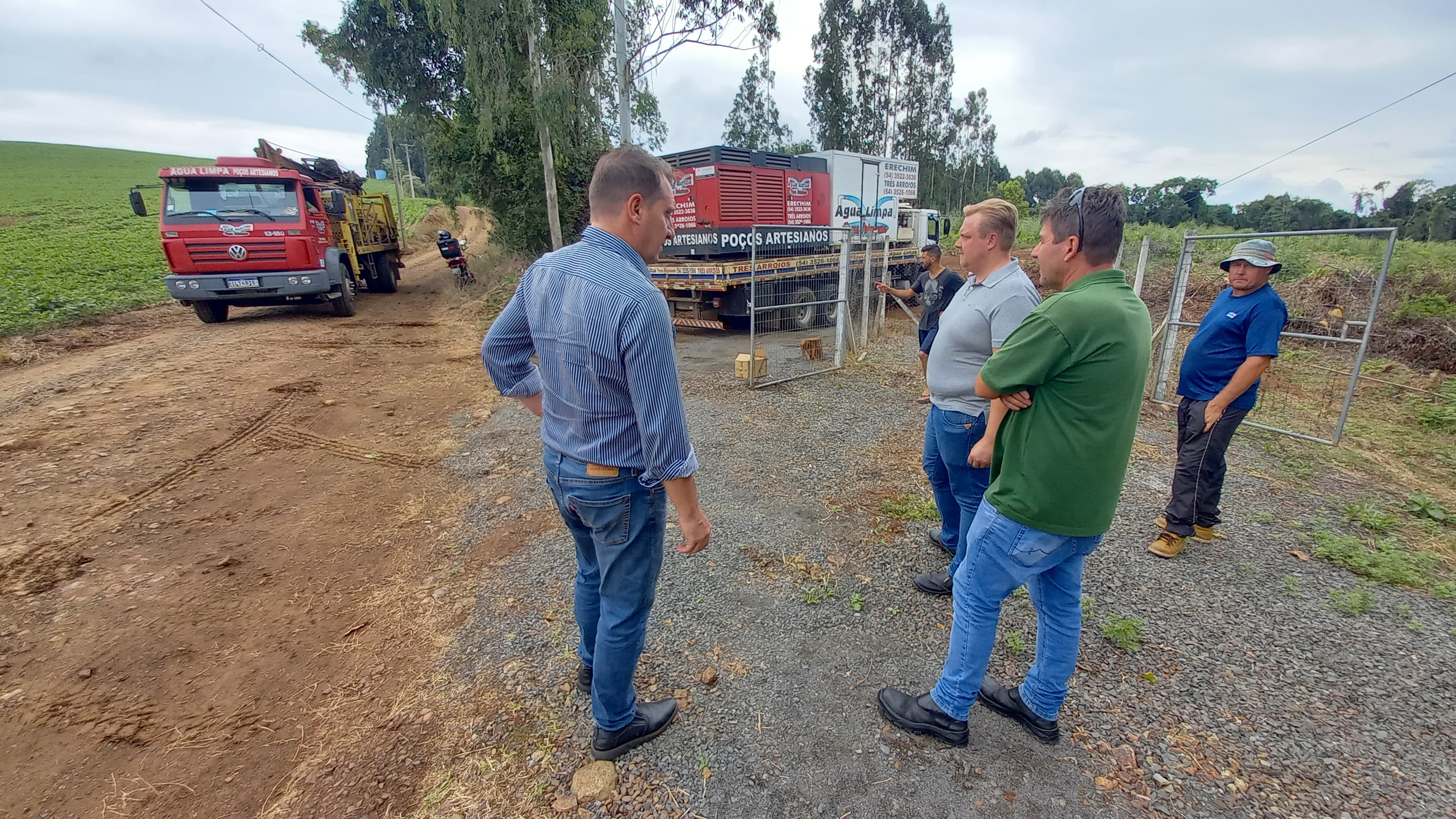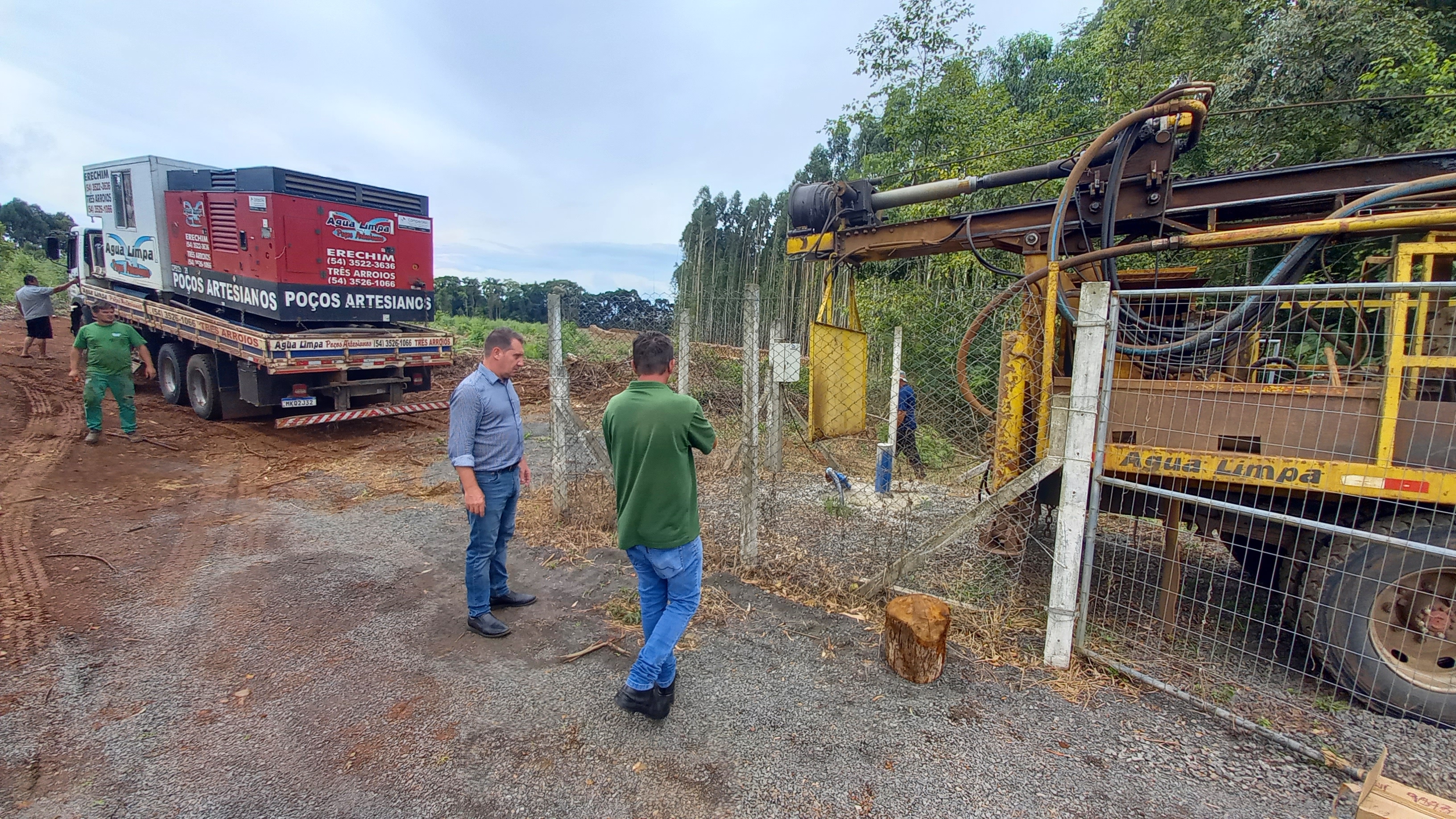 Eles também estiveram na Comunidade Escola Branca, onde está sendo perfurado um poço artesiano com 300 metros de profundidade. “Nós temos 45 famílias que estão recebendo água com caminhão-pipa da Defesa Civil, muitas são daqui da comunidade. Esse novo poço deve atender em torno de 20 famílias”, afirma Paulo Polis.