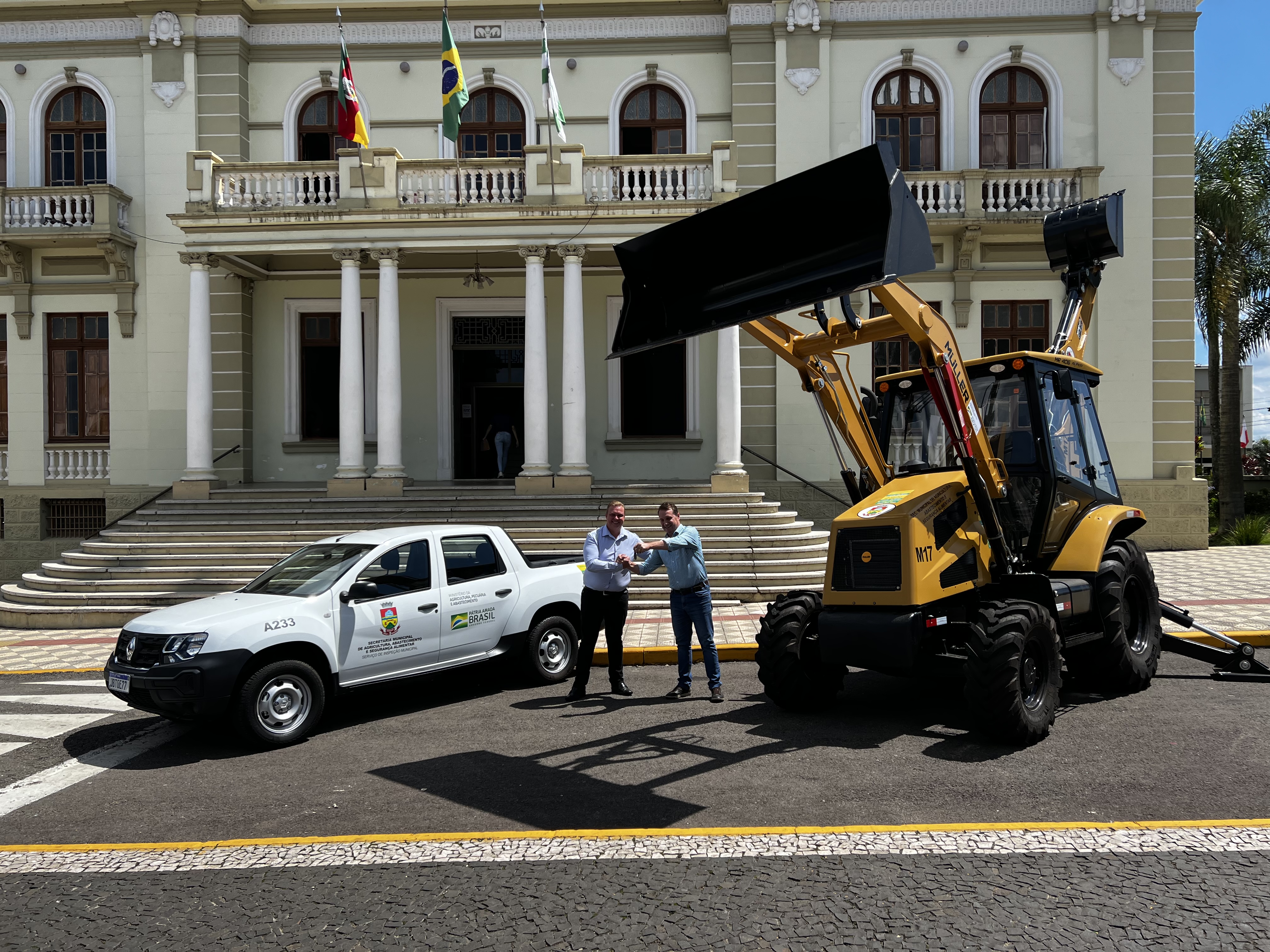 A retroescavadeira e uma picape Oroch foram adquiridas, por meio da Emenda Parlamentar, do deputado Heitor Schuch (PSB) e do senador Paulo Paim (PT).