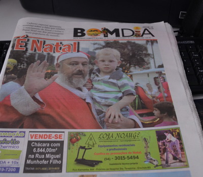 Já está circulando a edição impressa do Jornal Bom Dia, com caderno especial de Natal. Matérias especiais pautam a data que celebra o nascimento de Jesus e torna o Papai Noel um dos personagens mais populares do mundo. Entre os destaques está a história do bancário Cláudio Cristani (foto de capa), que há 14 anos se transforma no “Papai Noel do trenó”, circulando pelas ruas de Erechim.