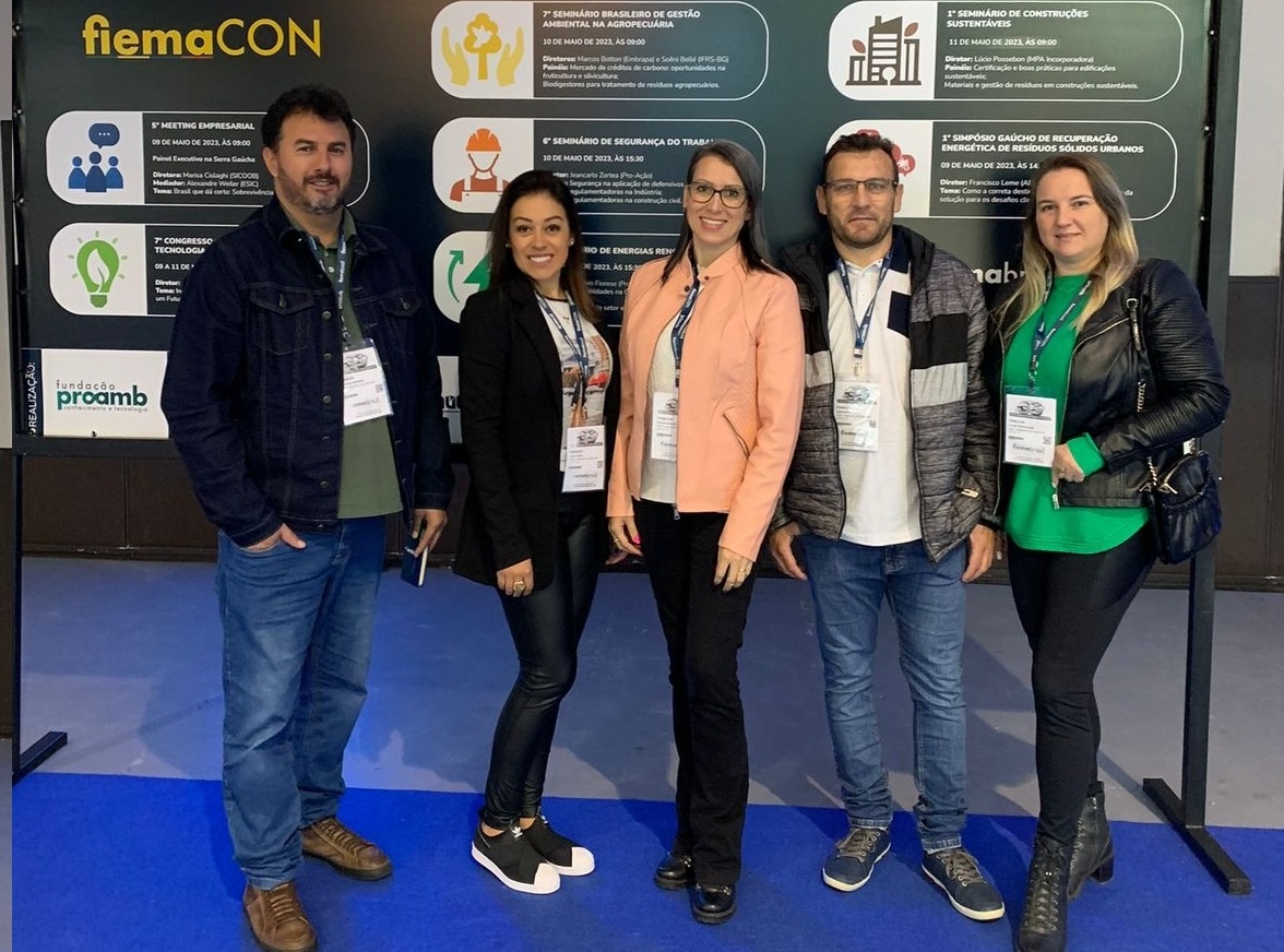 Entre os dias 09 e 11 de maio, parte da equipe técnica da Secretaria Municipal de Meio Ambiente participou da FIEMA Brasil – Feira de Negócios e Tecnologia em Meio Ambiente, um evento de amplitude internacional, onde foram apresentadas as inovações tecnológicas para o setor ambiental, com maior foco em reaproveitamento e coprocessamento de resíduos, equipamentos para os mais diversos setores e inovação tecnológica, que aconteceu em Bento Gonçalves.