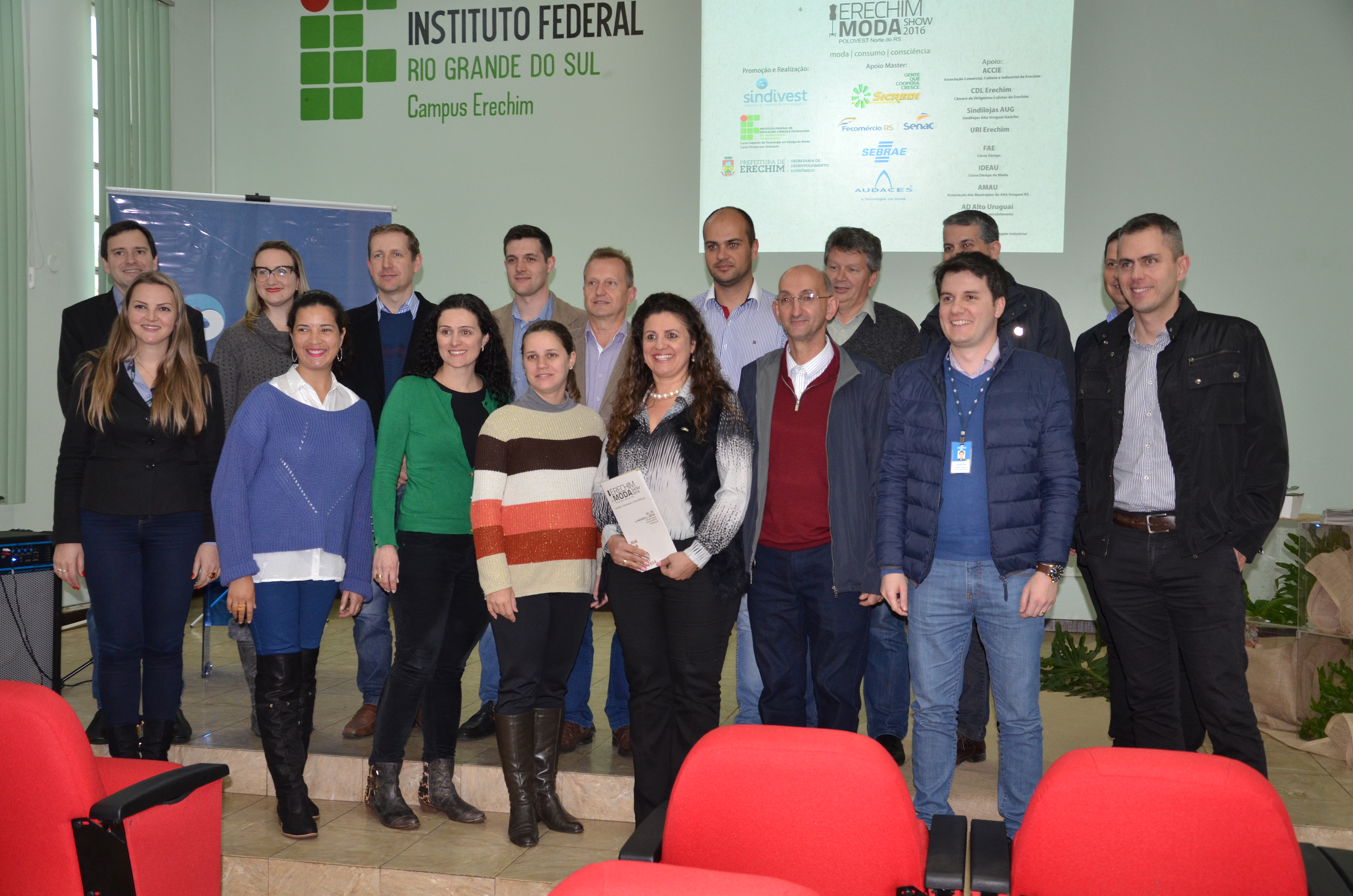 O Auditório do Bloco 4 do Instituto Federal do Rio Grande do Sul – IFRS Campus Erechim foi palco do lançamento oficial para a imprensa e entidades parceiras do Erechim Moda Show 2016, que acontece em Erechim nos dias 24 e 25 de outubro, no Polo de Cultura do Parque da ACCIE, em Erechim. Em sua 6ª edição, o evento tem como tema Moda, Consumo, Consciência e Sustentabilidade. Durante a solenidade também foram lançados o Concurso Novos Designers da Moda – 3ª edição e o 2º Desafio de Moda, que são ações integradas à programação do Erechim Moda Show 2016.