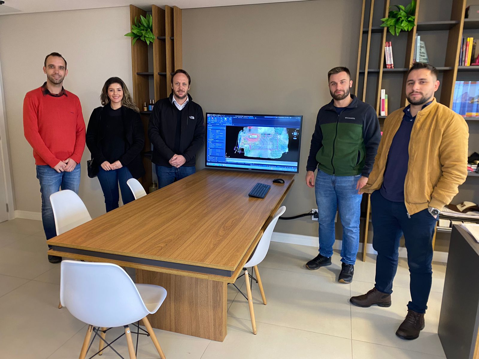 O vice-prefeito de Erechim, Flavio Tirello, e o secretário de Desenvolvimento Econômico, Inovação e Turismo, Emerson Schelski, visitaram, em Passo Fundo, na manhã desta quinta-feira (22), a empresa que ganhou a licitação para elaborar o projeto do novo Condomínio Industrial. Além disso, eles fizeram uma visita técnica à superintendência regional do DNIT.