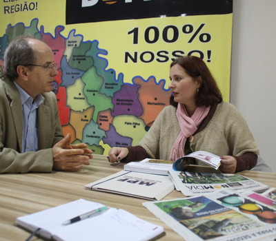 Adriana também reafirmou, durante conversa com editor chefe Antonio Grzybowski, a parceria da entidade com os veículos de comunicação do interior do RS.