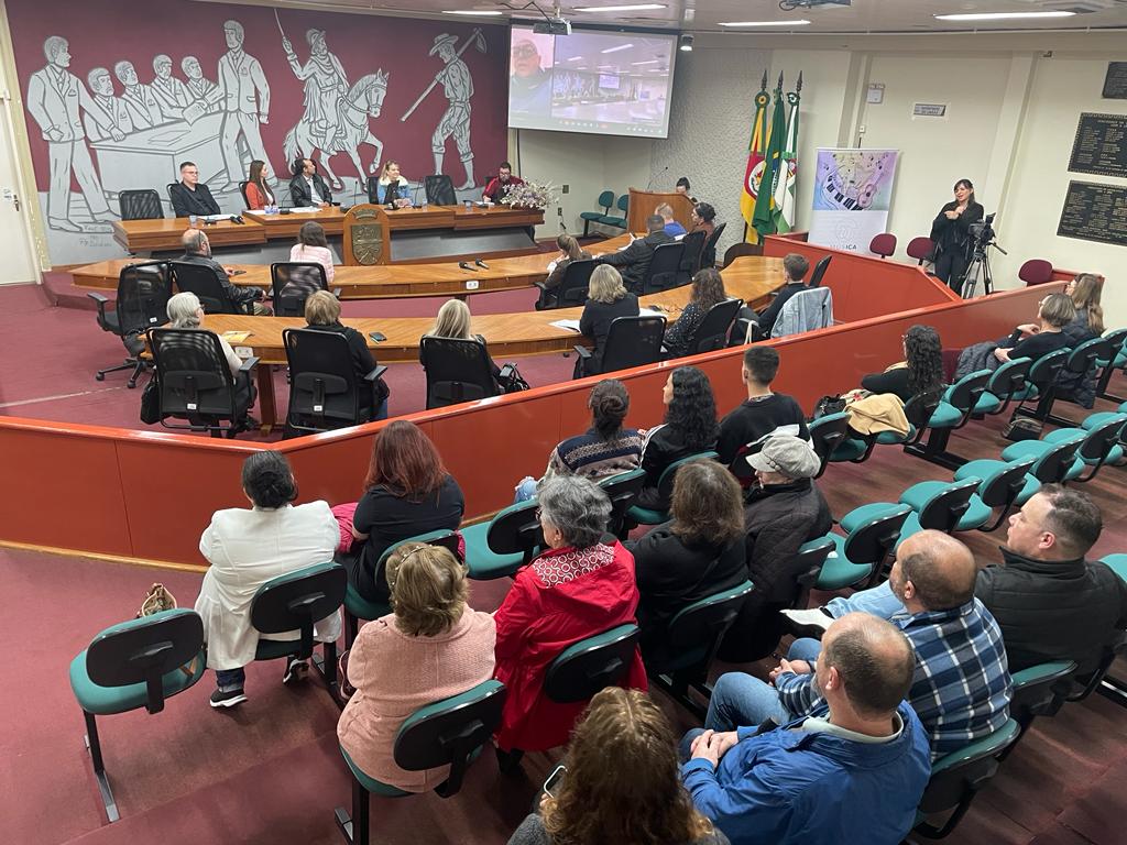 A secretária Carla Talgatti apresentou, brevemente, uma atualização na legislação feita recentemente. “Percebemos que era necessário atualizar nossa legislação porque haviam coisas que estavam se contrapondo. Como íamos receber recursos da Lei Paulo Gustavo, percebemos essa necessidade”, comentou. Ela apresentou ainda, que o Fundo de Apoio as Artes e a Cultura (FAACE), será permanente, recebendo do 0,12% do orçamento do município. “Com isso, esse fundo que recebia em torno de 60 mil por ano, vai passar a receber, conforme as previsões orçamentárias, aproximadamente 500 mil. Além disso, os recursos vindos de mensalidades do Centro de Belas Artes Osvaldo Engel e tarifas do Centro Cultural 25 de Julho também serão direcionados pra esse fundo que será usado para representatividade, editais, entre outras formas de fomentar a cultura”, explicou a secretária Carla.