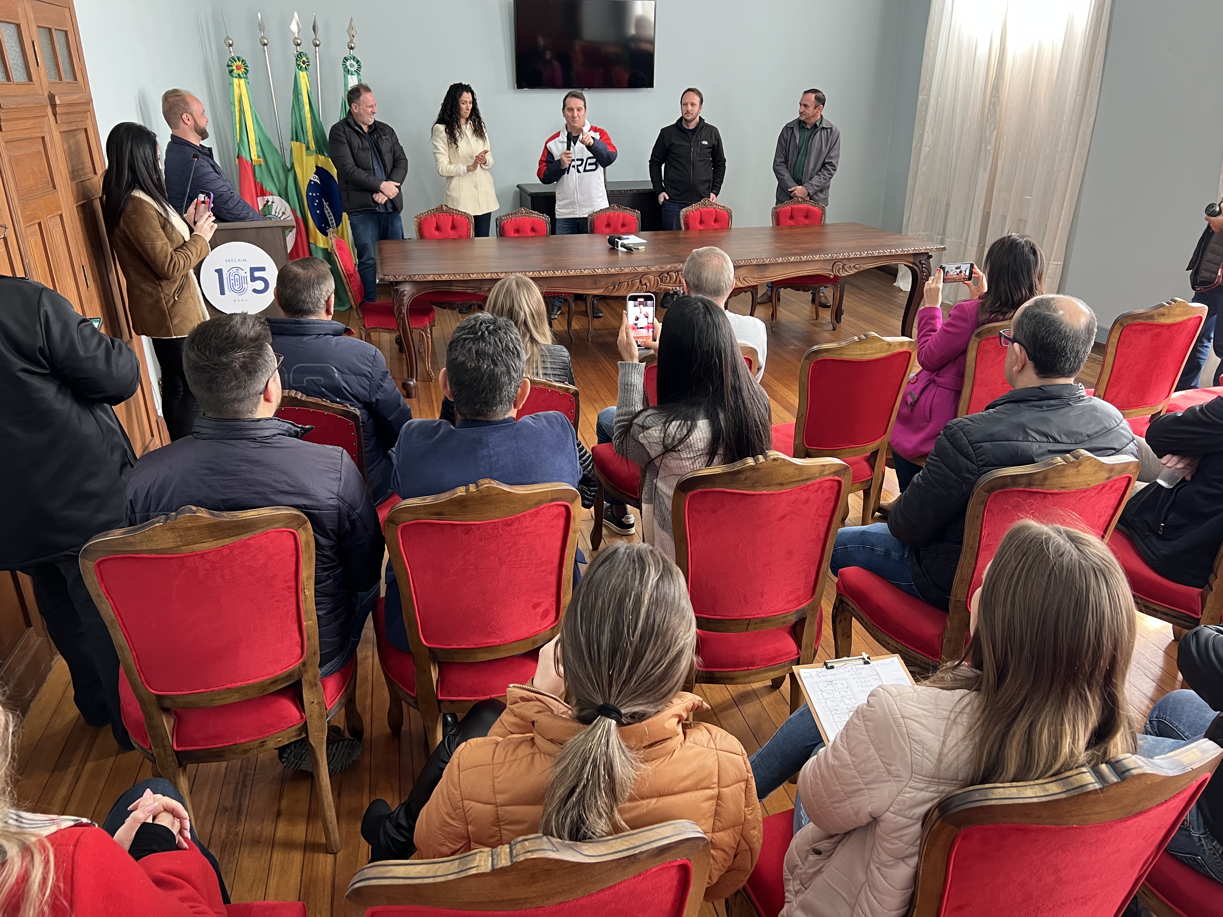 A Prefeitura de Erechim, através da Secretaria de Saúde, assinou na manhã desta segunda-feira (28) o termo de início de obras para ampliação e reforma da Unidade Básica de Saúde (UBS) Bela Vista. A solenidade, realizada no Salão Nobre, contou com a presença do prefeito de Erechim, Paulo Polis; do vice-prefeito, Flávio Tirello; da secretária de Saúde, Éclesan Palhão; do vereador Juarez Bernardi, representando a Câmara de Vereadores; do representante da empresa vencedora da licitação Elisandro Battisti e Cia; a coordenadora UBS Bela Vista, Tais Bordin; demais secretários de Governo; vereadores; servidores públicos e imprensa.