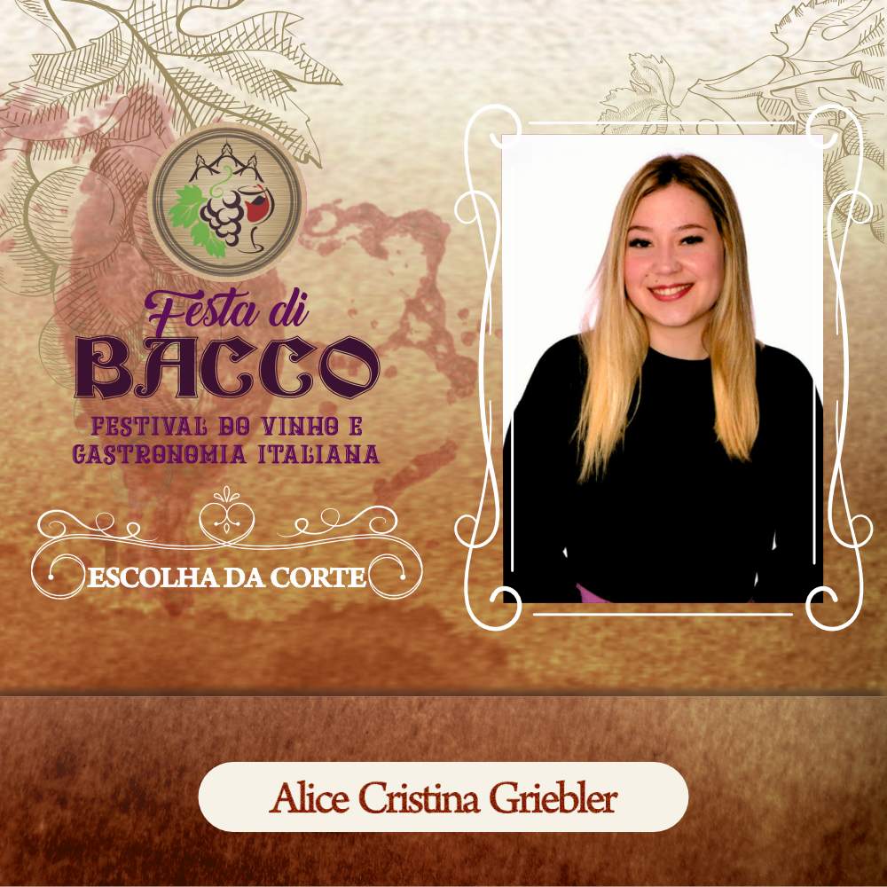 A corte será composta pela rainha e duas princesas. Sete meninas se candidataram e vão passar por avaliação oral e de conhecimentos sobre a história de Erechim, da produção da uva e dos 23 anos da Festa Di Bacco, avaliação de comunicação, etiqueta e o último, o desfile, durante o Festival do Vinho e Gastronomia Italiana. No mesmo momento será apresentada a corte infantil da Festa Di Bacco.
