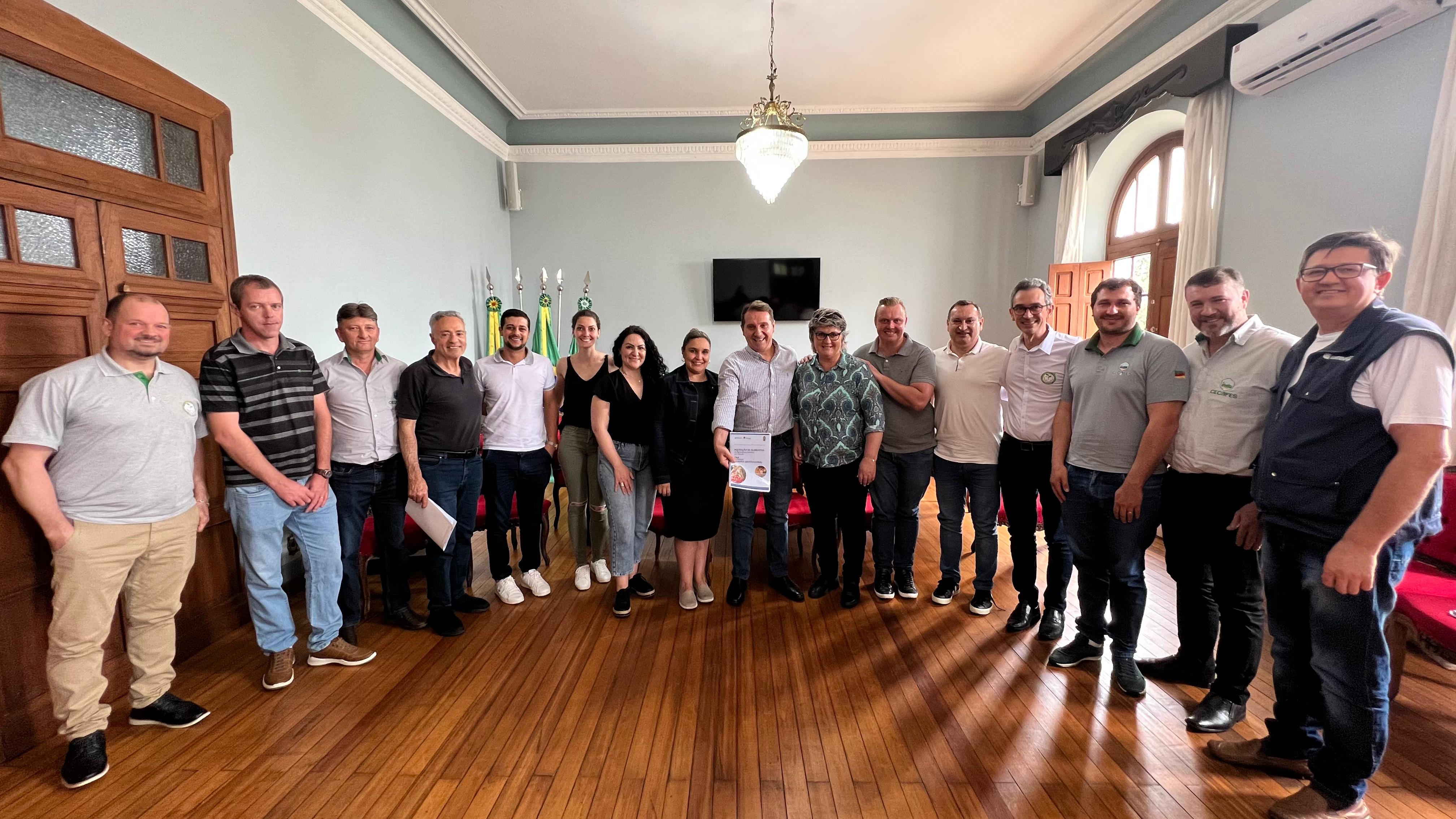 O anúncio foi feito no Salão Nobre da Prefeitura, pelo prefeito Paulo Polis, acompanhado da secretária de Administração, Izabel Ribeiro, da secretária de Educação, Verenice Lipsch, do secretário de Agricultura, Abastecimento e Segurança Alimentar, William Racoski, do secretário de Gestão e Governança, Edgar Marmentini, além de secretários adjuntos, servidores e representantes das Cooperativas que fazem os encaminhamentos das compras da Alimentação Escolar com os produtores rurais.