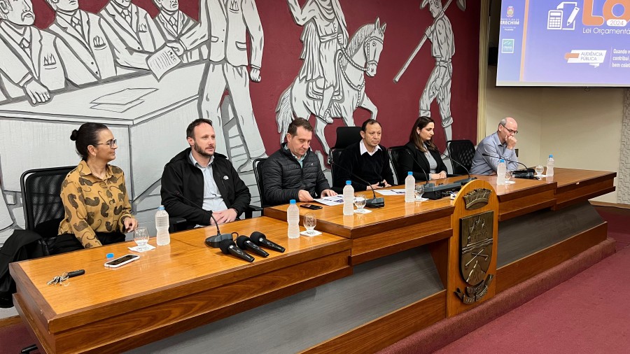 Prefeitura de Erechim, por meio das secretarias de Planejamento e Fazenda, realizou audiência pública de apresentação da Lei Orçamentária Anual (LOA), para o exercício 2024, nesta quinta-feira (19), as 10 horas, na Câmara de Vereadores. Estiveram presentes o prefeito de Erechim, Paulo Polis, vice-prefeito, Flavio Tirello, o presidente da Câmara de Vereadores, Sergio Bento, secretários municipais, vereadores, representantes de entidades e comunidade em geral.