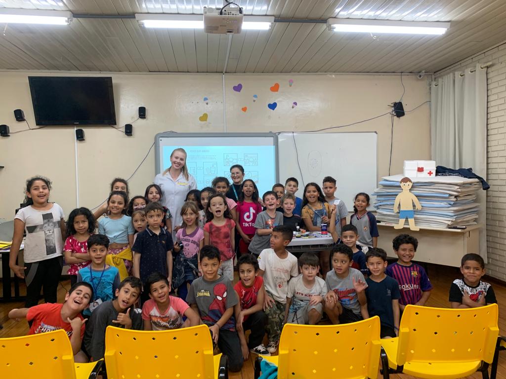 Na última quarta-feira (1), a farmacêutica Alexandra Nava Brezolin, acompanhada da estagiária Milene Steffen, esteve na Escola Estadual de Ensino Fundamental São Vicente de Paula, em Erechim, para desenvolver atividades lúdicas e educativas com os alunos, abordando temas essenciais relacionados ao uso responsável de medicamentos.