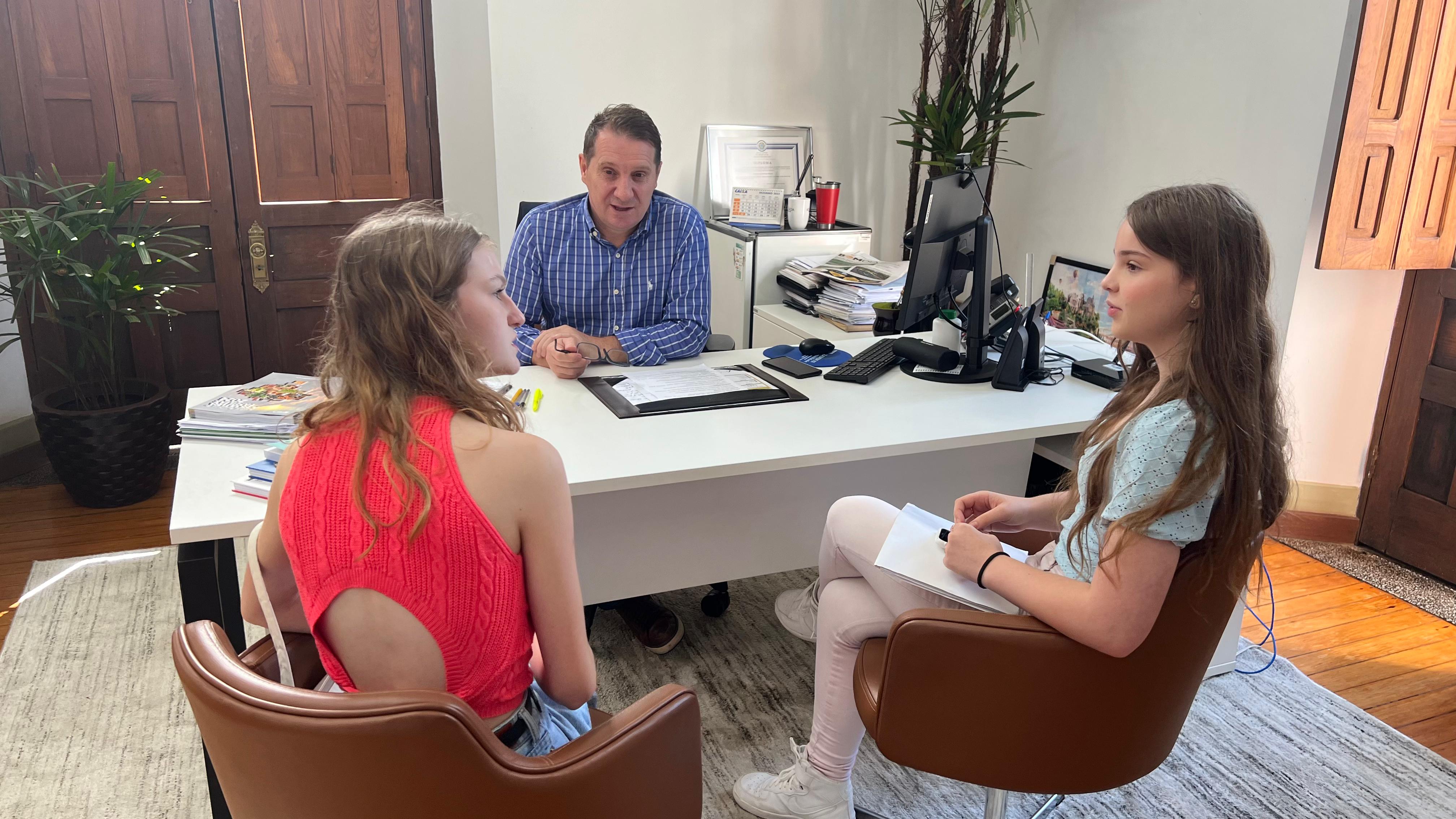 O prefeito de Erechim, Paulo Polis, recebeu as duas jovens de 17 anos, na manhã desta terça-feira (12), abordando assuntos como as propostas que serão levadas para conferência, o evento local realizado em setembro, entre outros.