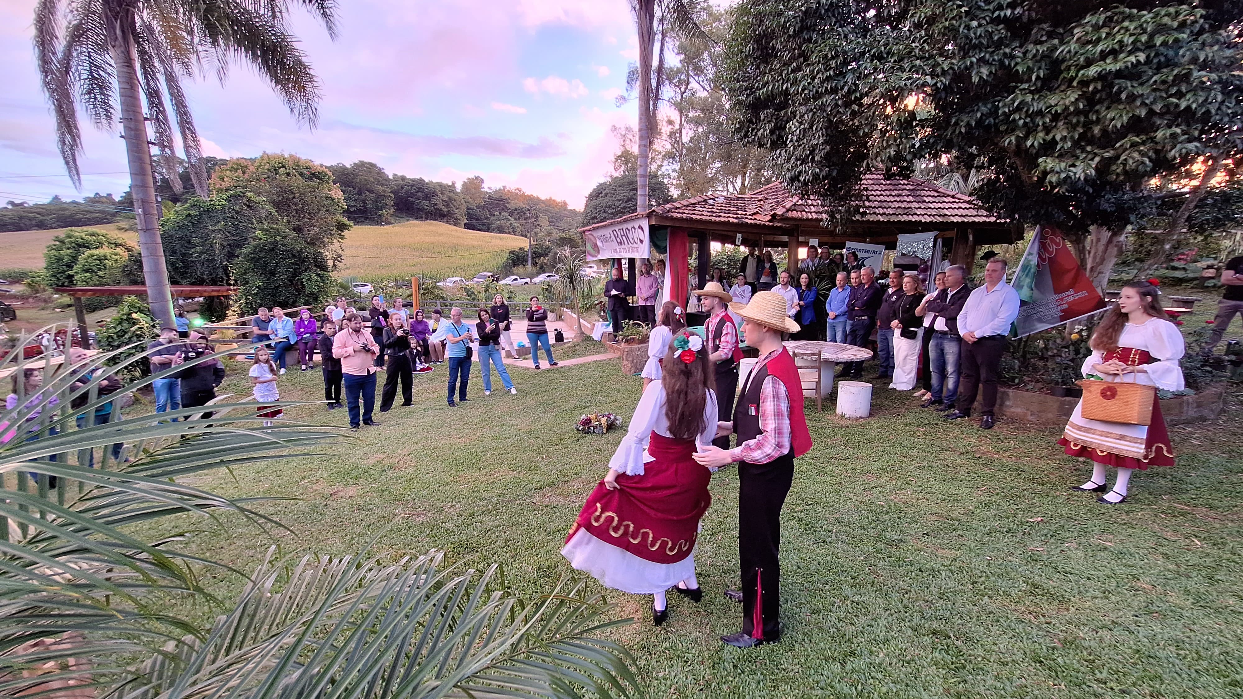 A família anfitriã, com o produtor Valmor Ficks, a esposa Denise e o filho Lucas, deram as boas-vindas aos convidados da cerimônia. Depois disso, os representantes da organização fizeram seus pronunciamentos.