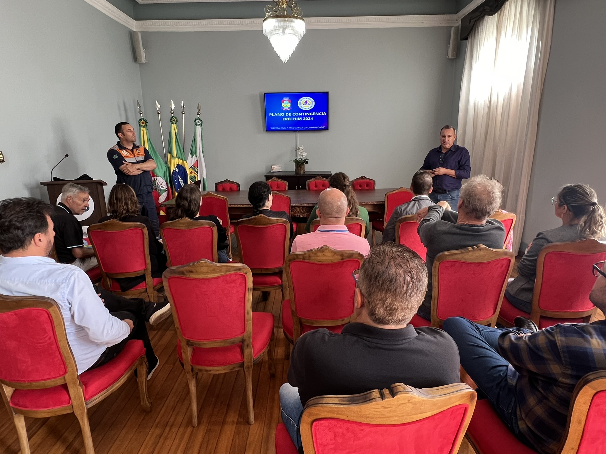 A Defesa Civil, órgão ligado à Secretaria Municipal de Gestão e Governança em Erechim, realizou na manhã desta quinta-feira (25), um treinamento com servidores das Secretarias Municipais sobre o Plano de Contingência 2024, que é um documento que reúne o direcionamento e orientações a respeito de atitudes que devem ser realizadas pelas Secretarias e demais membros do Conselho Municipal de Defesa Civil diante de situações imprevisíveis, principalmente em casos climáticos.