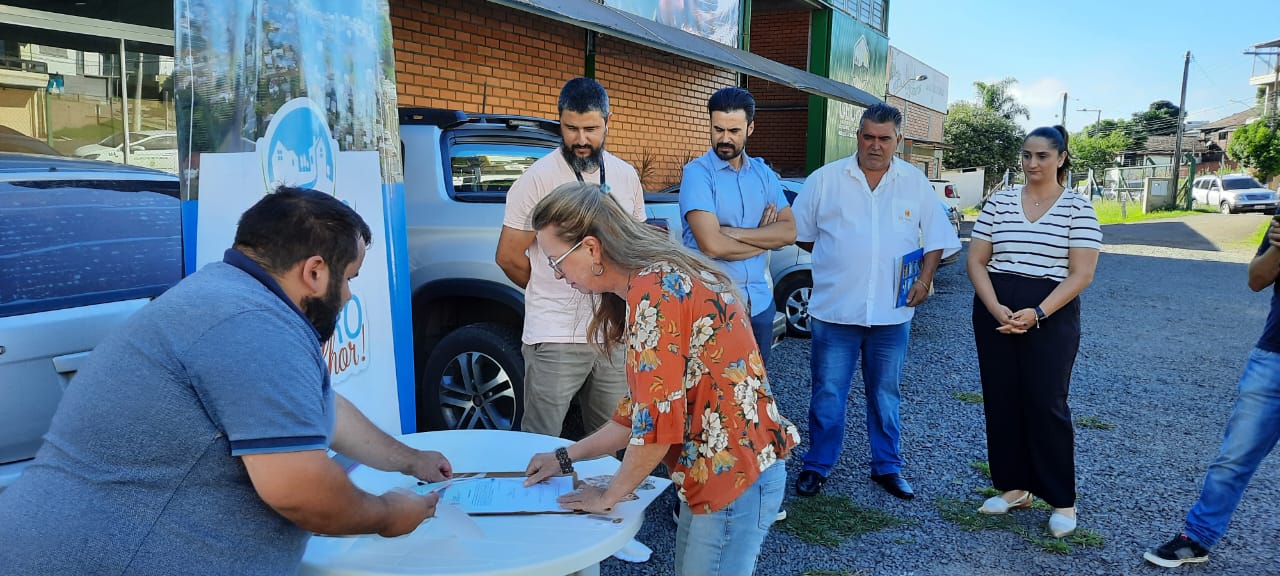Depois de muitos anos de espera, a comunidade do bairro São Cristóvão vai ter, pela primeira vez, um espaço público de lazer e convívio social. A praça, localizada na rua Santos Dumont, será construída pela Prefeitura de Erechim, por meio da Secretaria de Planejamento e o setor Meu Bairro Melhor. Na manhã desta quinta-feira (22), a secretária adjunta, Aline Prichua, assinou a ordem de início das obras. Os investimentos chegam a R$ 152.465,43.