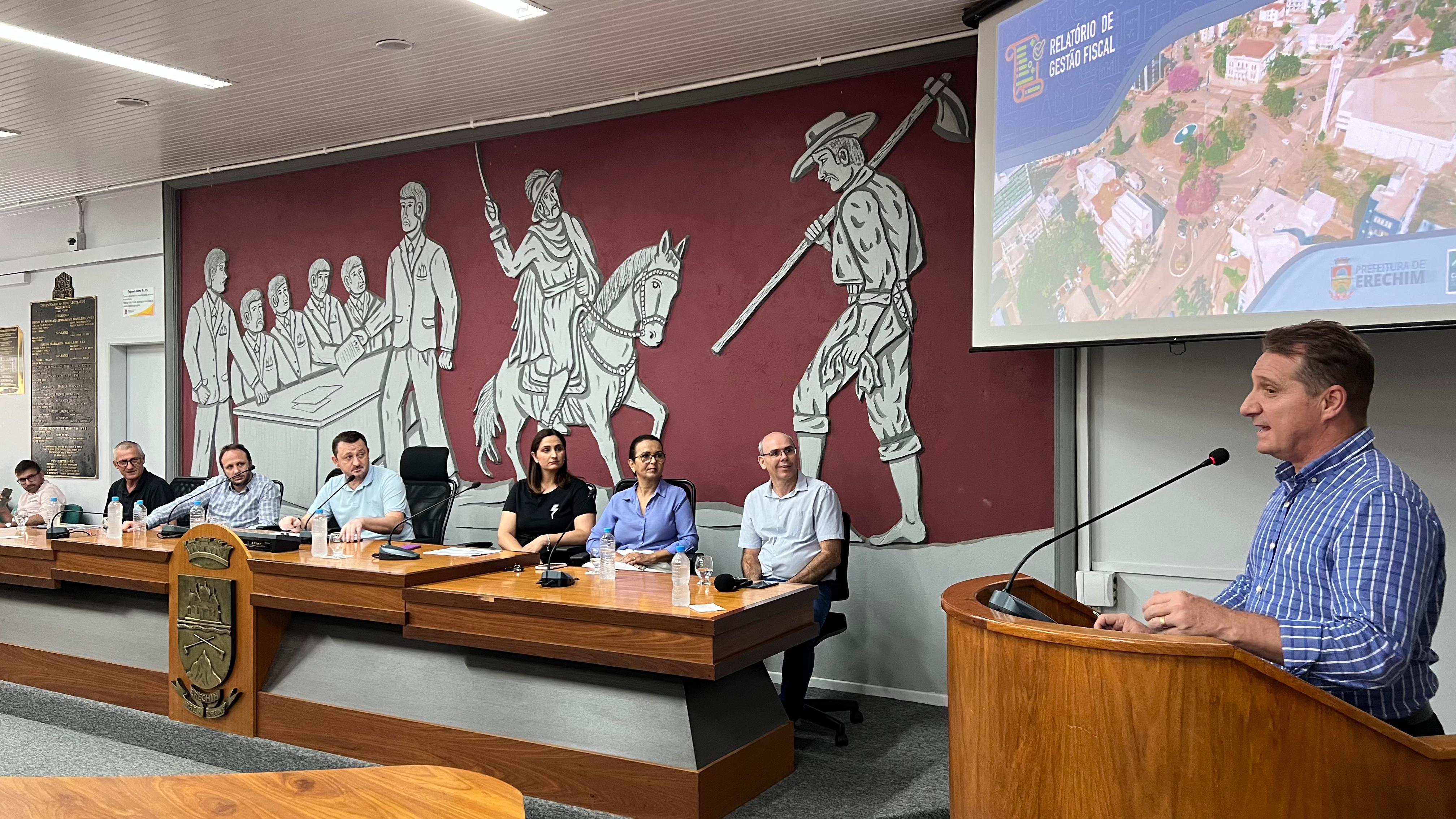 É com equilíbrio econômico-financeiro das contas públicas, transparência, eficiência dos serviços públicos, investimentos em áreas estratégicas, gestão humanizada, que a Prefeitura de Erechim avança. Essas são algumas das metas do município, que investiu 12,68% do orçamento de 2023, percentual aplicado por poucas prefeituras do Brasil, com capacidade alta de fazer investimentos, e fechou o referido ano com aumento na arrecadação, segundo dados do Relatório de Gestão Fiscal do 3o quadrimestre de 2023, apresentado quarta-feira (28), na Câmara de Vereadores de Erechim, pela Prefeitura de Erechim, por meio da Secretaria da Fazenda e Planejamento.