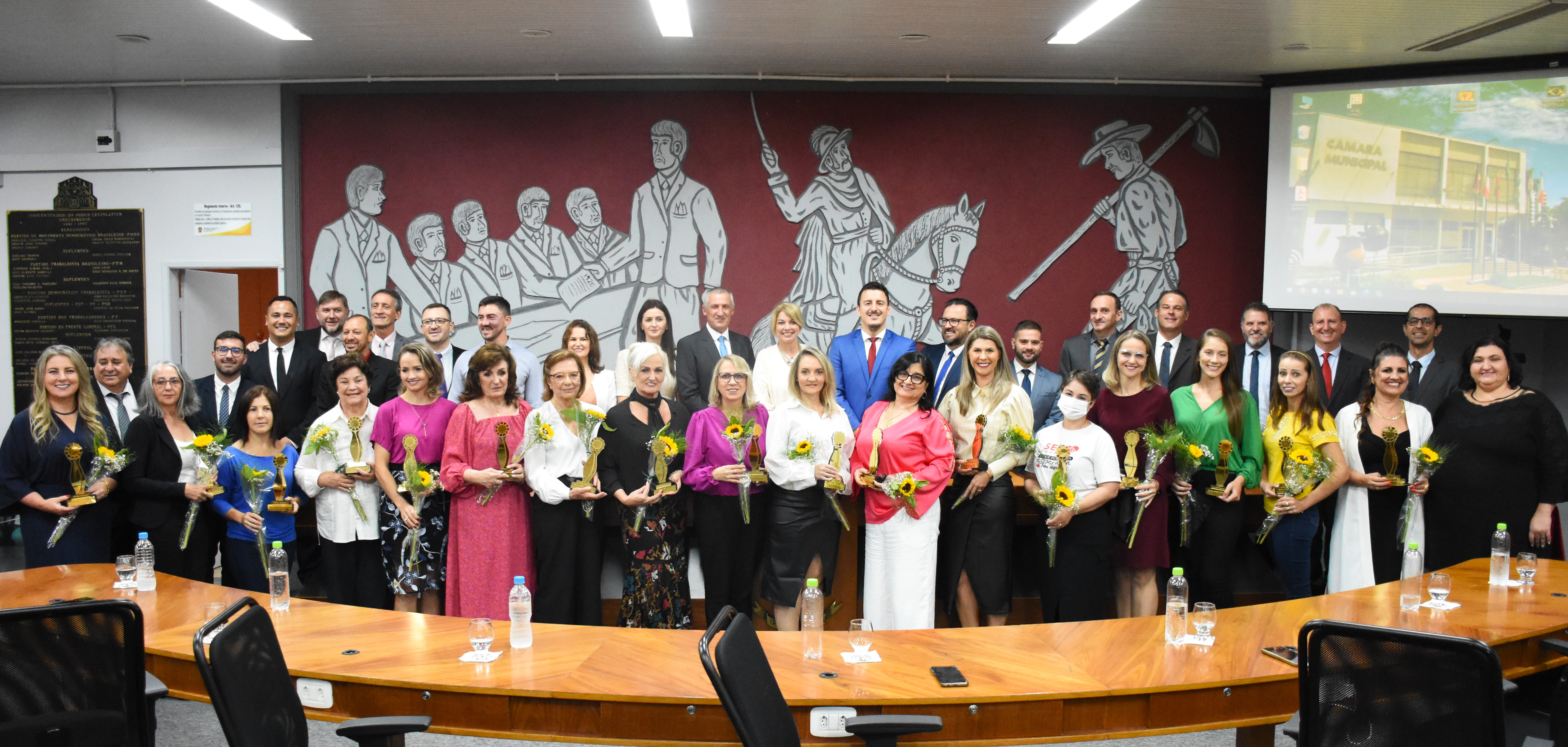 O girassol é conhecido por ser uma planta que está em constante movimento, sempre buscando a claridade para sobreviver e se manter bela, forte e em constante crescimento. Partindo de uma analogia entre esta flor e as mulheres, a vereadora Sandra Picoli (PCdoB) sugeriu a criação do Troféu Girassol – Mulher Cidadã, a fim de homenagear personalidades femininas e reconhecer e valorizar histórias marcadas por superação, conquistas e atuação em benefício da comunidade erechinense. Nesta sexta-feira (8), Dia Internacional da Mulher, foi realizada a entrega da honraria em uma sessão solene que lotou o plenário da Câmara e contou com a participação musical da banda Afluentes.