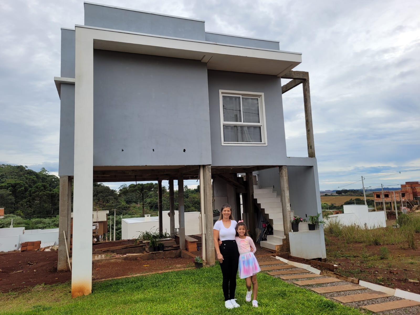 “Eu, Marildes da Rocha e Letícia Eli balvedi, nossa filha Ágatha, pagamos aluguel durante 18 anos, estamos casadas há 20 anos. Quando surgiu esta oportunidade nos inscrevemos no sorteio dos lotes sociais e fomos sorteadas. Isso foi uma grande oportunidade, principalmente, por causa dos valores. Em setembtro de 2022 viemos morar aqui. Depois de muitos anos de luta, conseguimos ir morar na casa própria, no que é nosso e isto não tem preço”, ressalta Marildes.