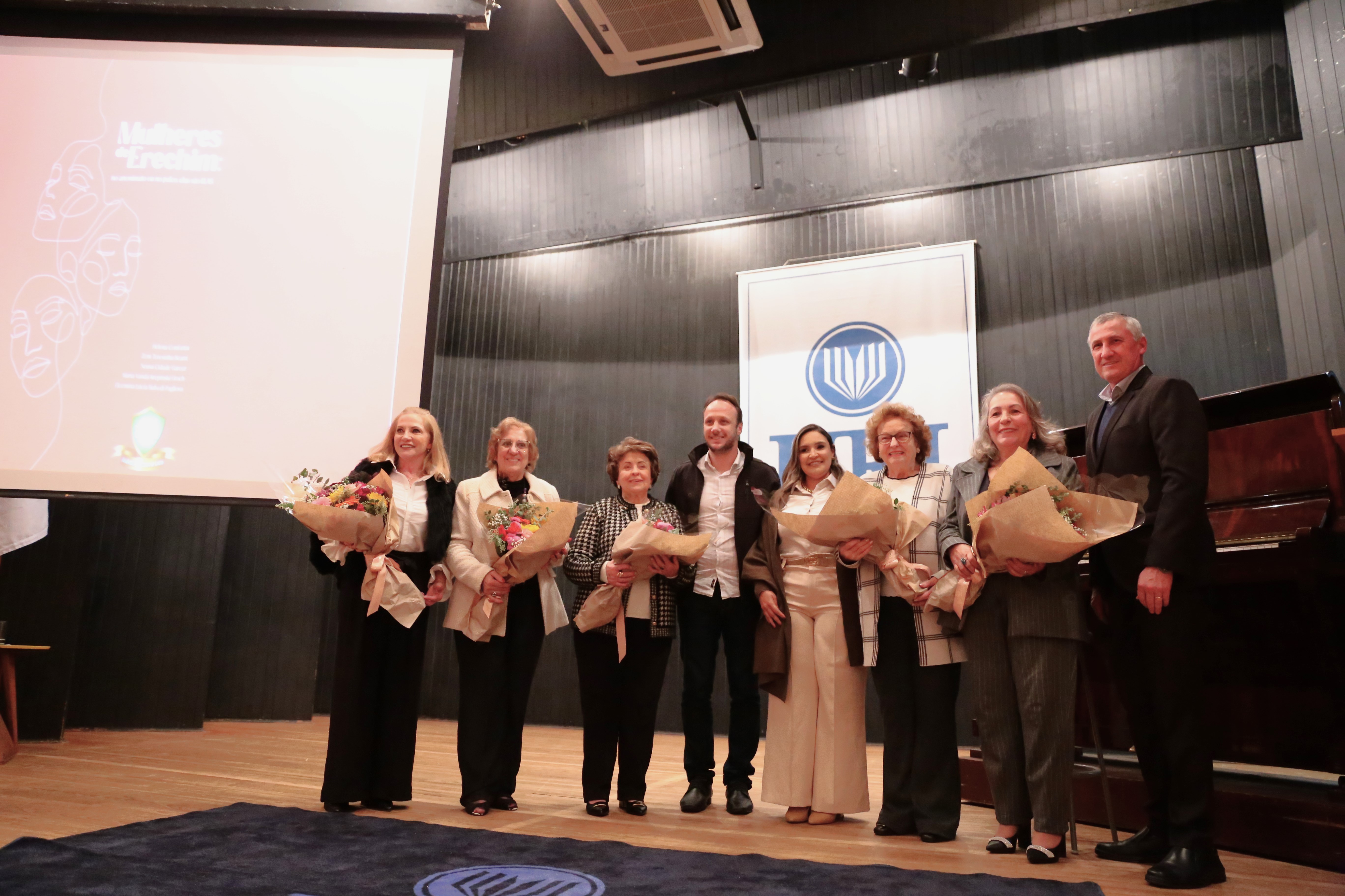 No fim da tarde desta terça-feira (25), no Salão de Atos da URI, a Academia Erechinense de Letras (AEL), realizou a Sessão Solene de Lançamento do Livro “Mulheres de Erechim: no anonimato ou no palco, elas são ELAS”. Na ocasião, 200 mulheres que constam na obra foram homenageadas pelas autoras: Helena Confortin, Zeni Teresinha Bearzi, Neusa Cidade Garcez, Maria Vanda Krepinski Groch e Elcemina Lúcia Balvedi Pagliosa. A atividade integrava a programação da 25ª Feira do Livro de Erechim e foi remarcada.