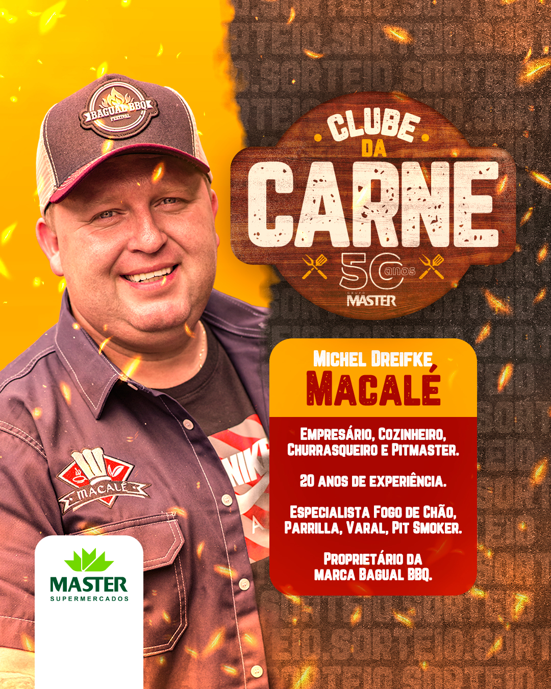 O Clube da Carne contará também com a presença do mestre churrasqueiro Macalé, do Bagual BBQ, que com 20 anos de experiência, dará dicas de preparo de cortes nobres pra o churrasco e para o dia a dia, com praticidade e economia. A programação acontece no Master da Avenida Sete, a partir das 17h.