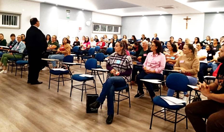 A Diocese de Erexim deu início à sua Escola Catequética na noite do dia 23 de abril, reunindo 92 catequistas de 16 paróquias no Auditório São José. A iniciativa é coordenada por Tânia Madalosso, com assessoria dos padres Jean Demboski e Dirceu Dalla Rosa, e faz parte do trabalho do Setor de Animação Bíblico-Catequética.
