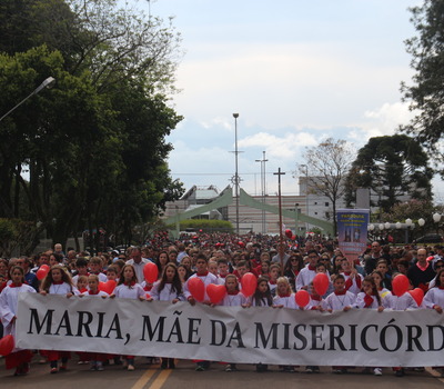 Elas caminharam da Praça Jaime Lago até o Seminário, levando balões e uma faixa com os dizeres “Maria, mãe da misericórdia! ”. Juntamente com elas o bispo da Diocese de Erechim, Dom José Gislon e a imagem de Nossa Senhora de Fátima.