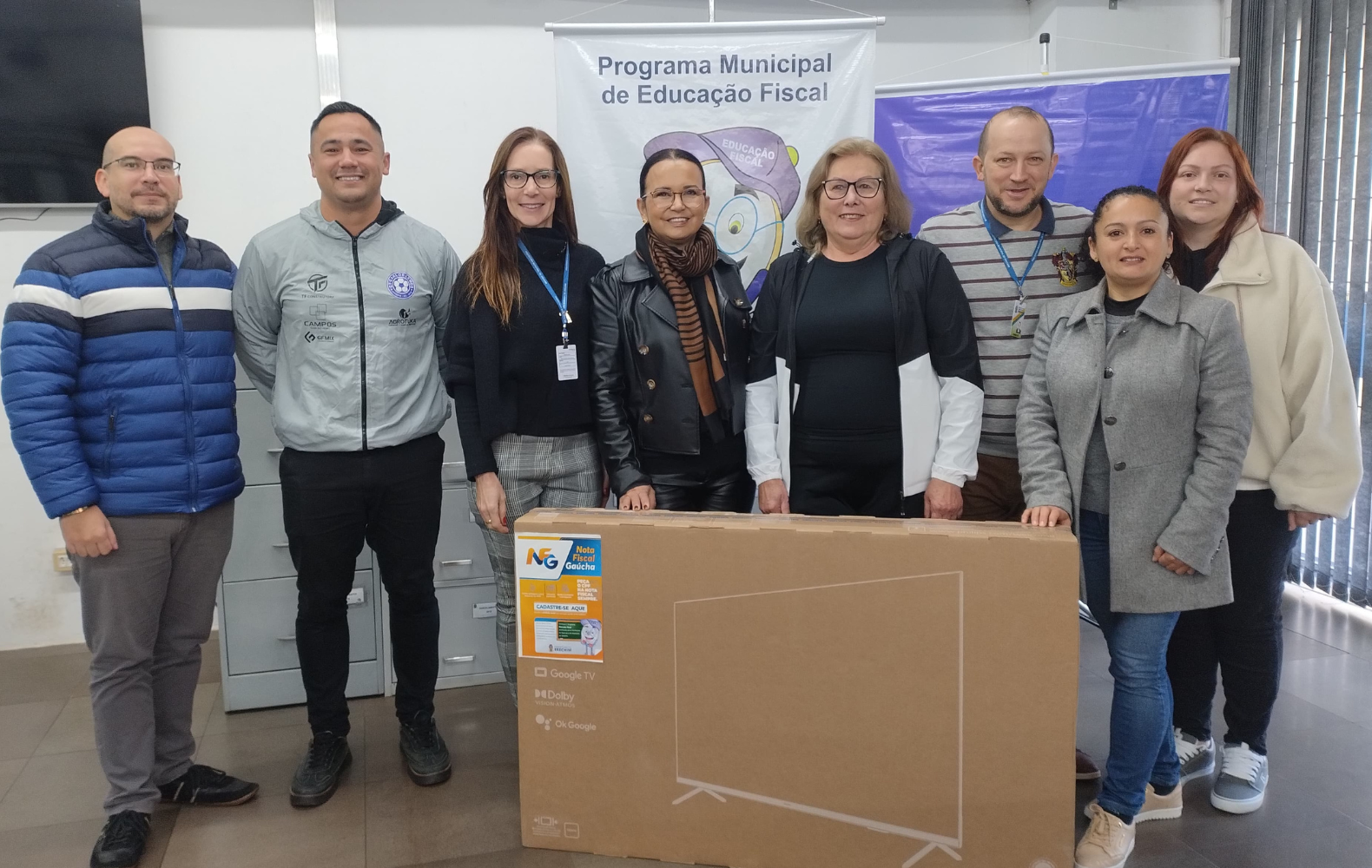 A ganhadora do sorteio de junho do programa Nota Fiscal Gaúcha (NFG) em Erechim, Marlene Terezinha Gradin Garcia, recebeu na manhã desta segunda-feira (7) o prêmio correspondente a uma televisão de 50 polegadas. A entrega foi realizada na Secretaria Municipal da Fazenda, com a presença da secretária Ana Oliveira, do secretário adjunto Carlos Lemos e de representantes da Comissão de Educação Fiscal e Tributária do município.