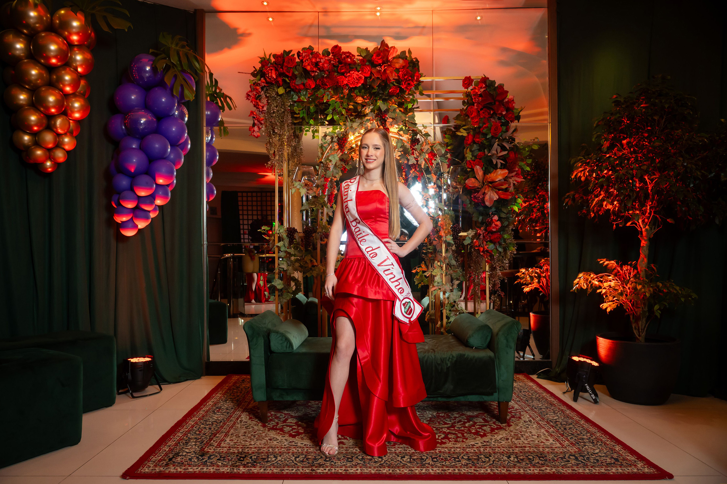 Em seguida, a nova Rainha do Baile do Vinho foi apresentada: Fernanda Romani Paraboni, estudante do segundo ano do Ensino Médio da Escola de Educação Básica da URI, que sonha em cursar Medicina e tem o Atlântico e o Grêmio no coração. Filha de Marisa Lúcia Romani Paraboni e Flávio Romero Paraboni, tradicionais colaboradores do clube, ela destacou em seu discurso o orgulho de fazer parte da história do Baile do Vinho. “Ser Rainha do Baile do Vinho vai muito além de uma faixa. É representar o amor, o pertencimento e o compromisso com o Atlântico e com a sociedade. Levo comigo a missão de representar com orgulho cada associado”.