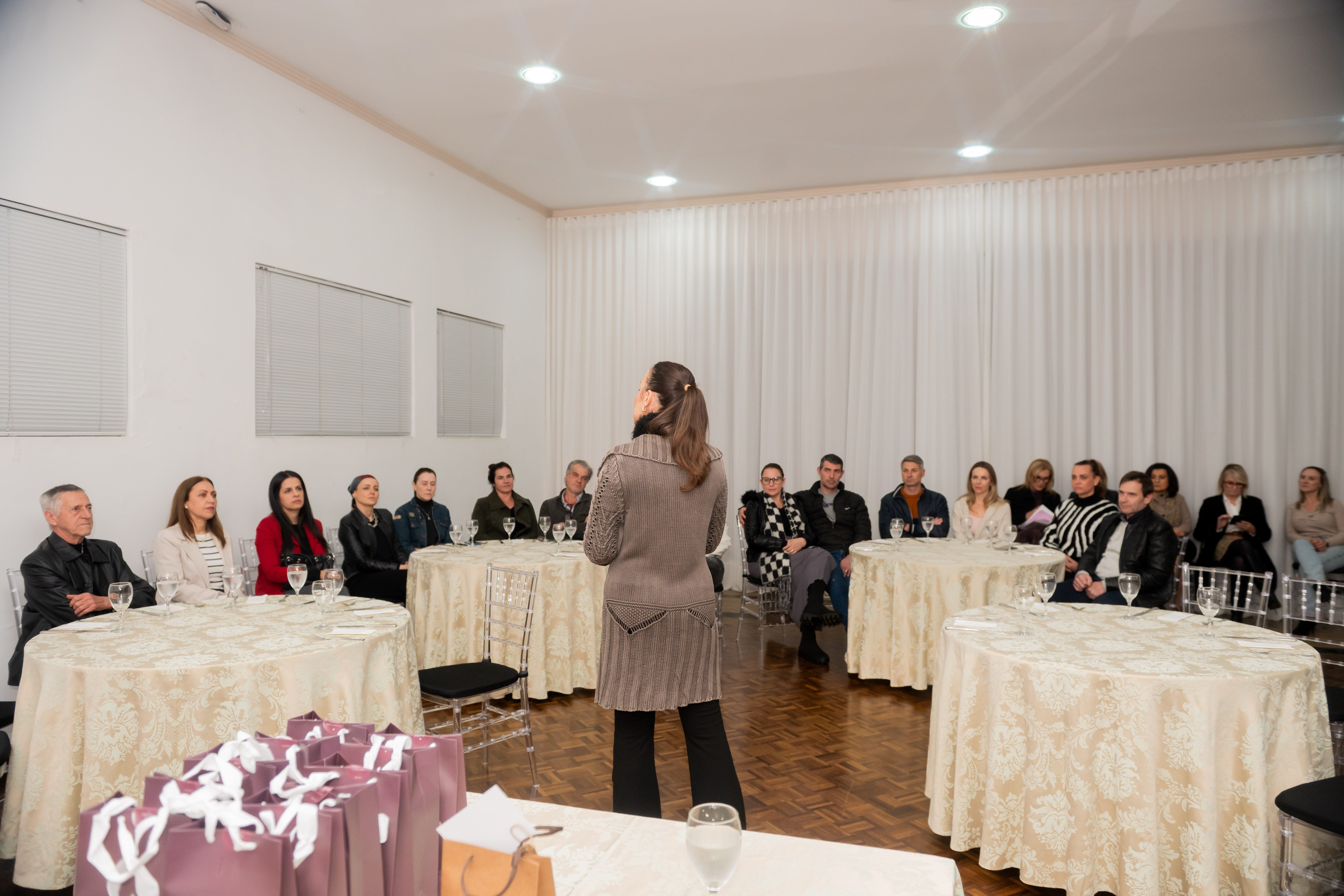 Após a palestra, os convidados foram recepcionados com um jantar especial preparado pelo Chef Osmar Piovesan. Na sequência, Lu e Lauri Pavan conduziram um momento de conversa com os pais, esclarecendo dúvidas e repassando orientações importantes sobre as próximas etapas da agenda social das debutantes.
