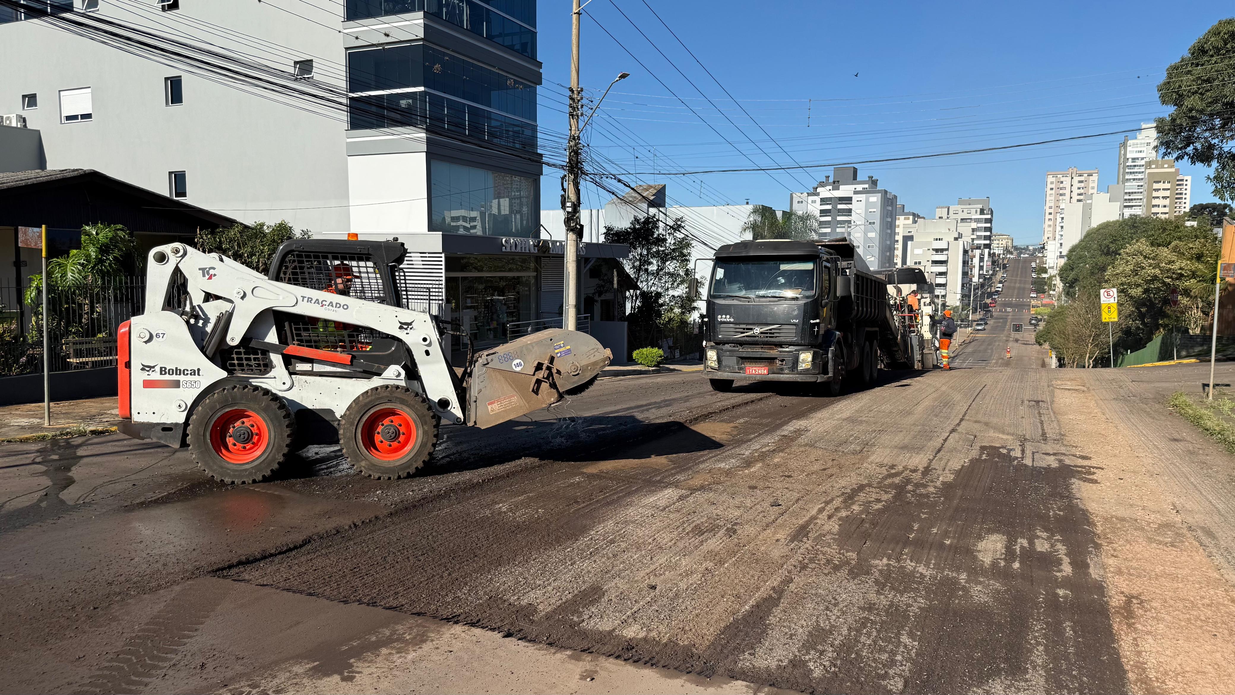 A Prefeitura de Erechim deu início a um importante trabalho de requalificação viária no centro da cidade. Estão sendo fresados 3.981,00 m² da Rua Espírito Santo e 2.197,00 m² da Rua Maranhão. Desse total, 1.400,00 m² terão execução direta da empresa terceirizada contratada, dentro do investimento de R$ 592.547,41, que inclui também as ruas de encaixe da Rua Léo Neuls e a construção de quatro quebra-molas.