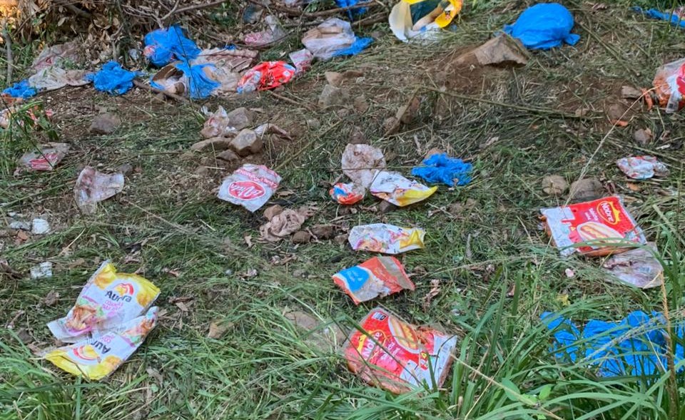 Segundo relatos e imagens, o descarte é de restos de alimentos, e pelo perfil das embalagens deve se tratar de algum restaurante. A quantidade de comida tem atraído dezenas de urubus.