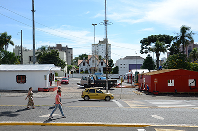 Uma empresa terceirizada começou a desmontar a estrutura da cidade do Papai Noel na Praça da Bandeira na manhã desta terça-feira (5).