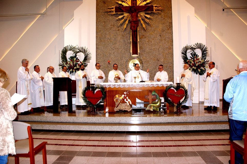 Na parte da tarde, ocorreu a adoração ao Santíssimo Sacramento e, em seguida, a celebração eucarística presidida pelo bispo diocesano, Dom Adimir Antonio Mazali, concelebrada por 11 padres e com a participação de dois diáconos. Na homilia, destacou o apelo do Papa pela paz diante dos conflitos no mundo e retomou o Evangelho do dia, que apresenta Cristo ressuscitado oferecendo a paz aos discípulos e concedendo o poder de perdoar os pecados. Também incentivou a retomada do sacramento da confissão e ressaltou o testemunho das primeiras comunidades cristãs, marcadas pela partilha, oração e vivência eucarística.
