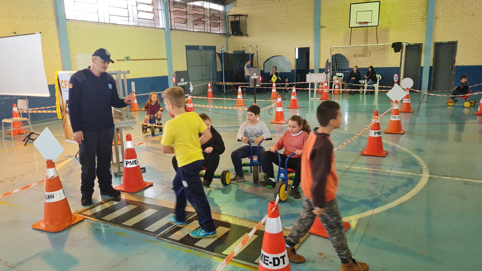 Escola Bôrtolo Balvedi recebeu equipe da Escolinha de Trânsito, nesta quarta-feira (21). Atividades fazem parte da 23a Semana Municipal do Trânsito