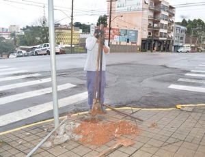 Na manhã desta quarta-feira (25), iniciaram os trabalhos de colocação no entroncamento entre a Rua Aratiba e Argentina