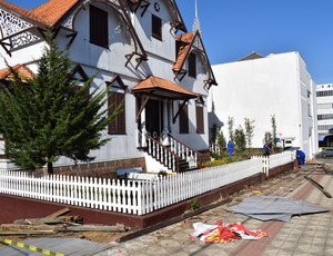 Nesta segunda-feira (31), nas primeiras horas da tarde, teve início a retirada do tapume para a etapa de acabamento do passeio e dos retoques nas obras de engenharia