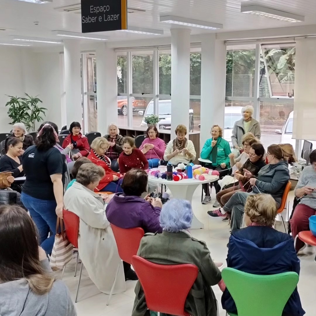 O grupo do Maturidade Ativa se reuniu para produzir gorros, mantas, meias, polainas, entre outros, que serão destinados as pessoas atingidas pelas enchentes